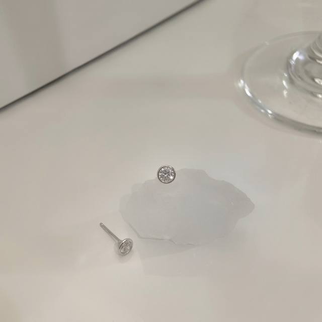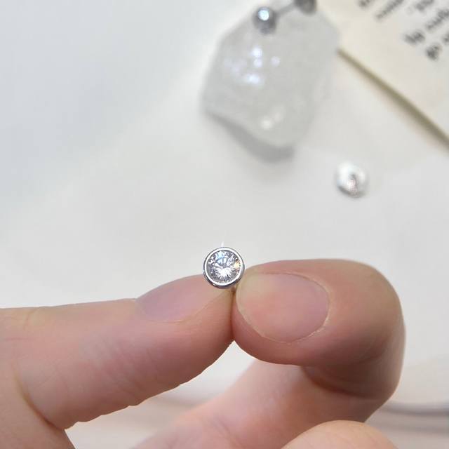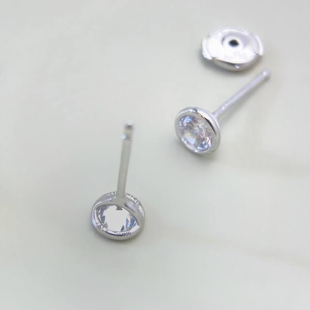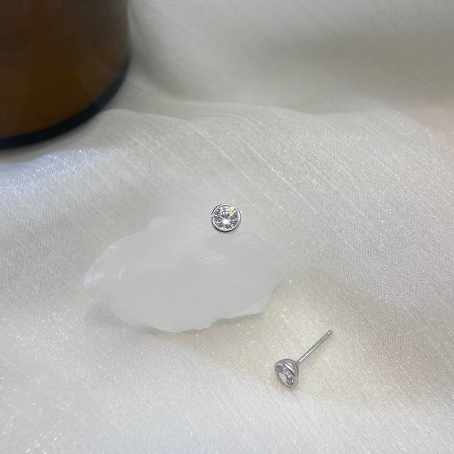 925 Sterling Silver Elsa Eretti Bubble Stud Earrings. These bubble stud earrings are the most basic and understated type. Each earring features a single 30-point diamond, suitable for everyday wear or for multiple ear piercings. The diamond isn't large but has good brilliance, and is surrounded by a silver bezel that is hypoallergenic.