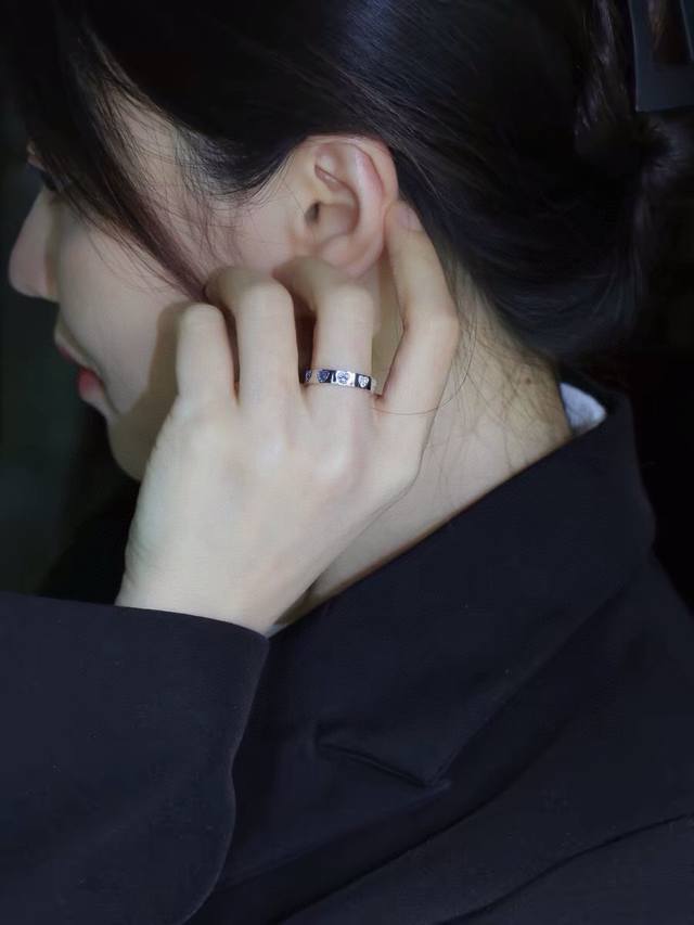 A batch M blue silver love ring couple personalized ring romantic new birthday gift.