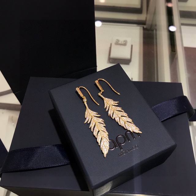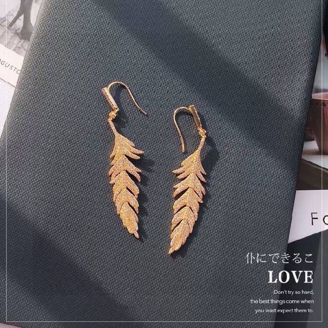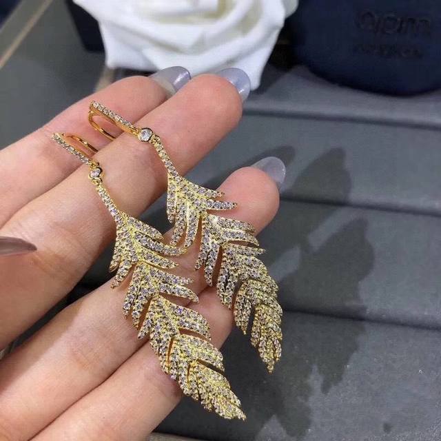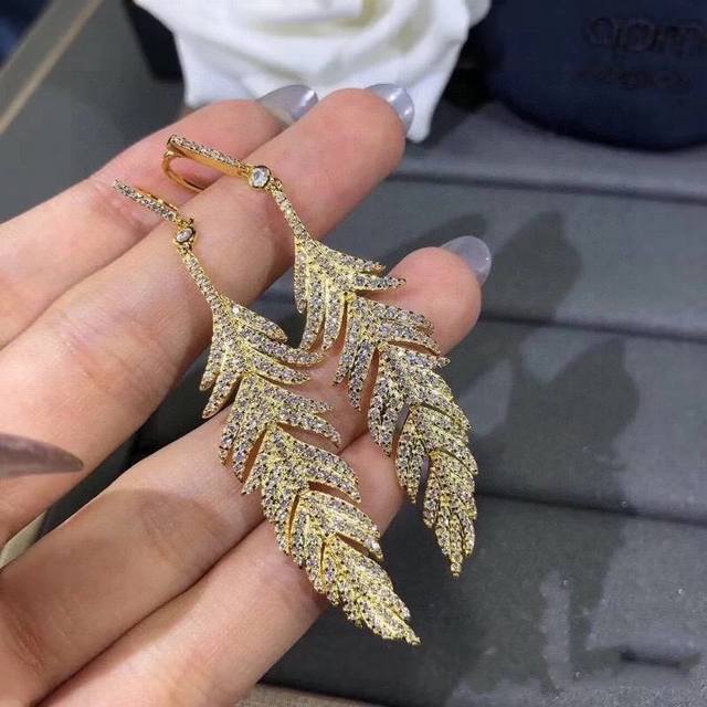 A batch M Monaco1 Feather ear cuffs for women, fashionable and elegant silver jewelry, unique style, selected original imported materials, thick gold plating, original 1:1 customization.