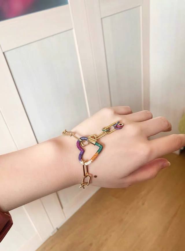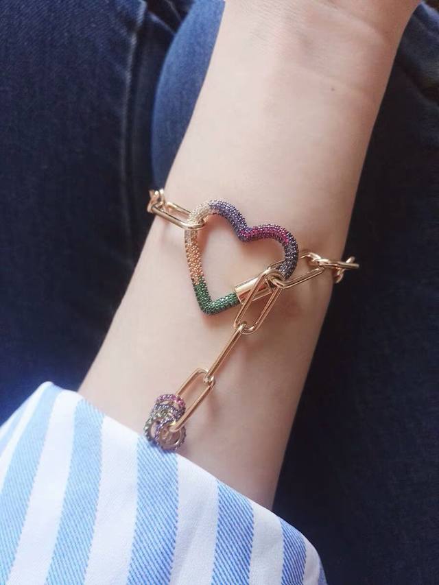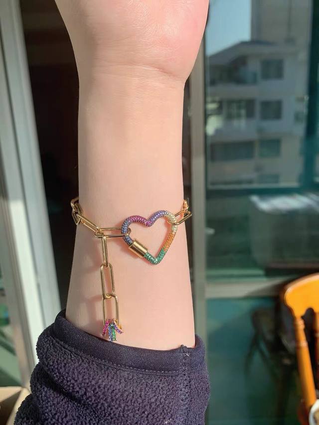 A batch of M Monaco rainbow heart pendant chain bracelet, sweet interlocking lin