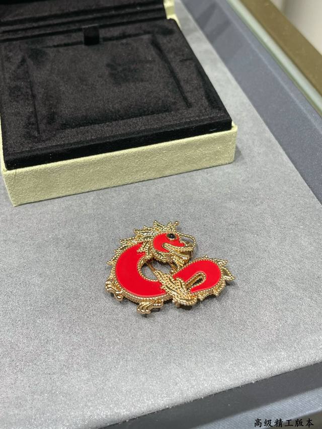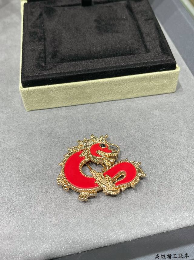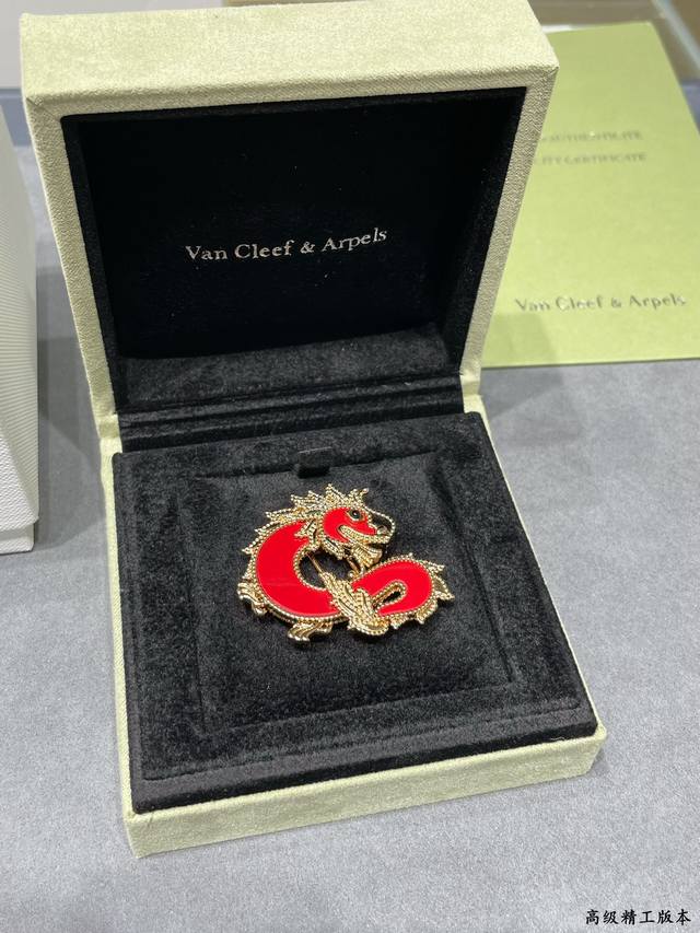 A must-have for the Year of the Dragon, this year of the Chinese Zodiac. This Van Cleef & Arpels zodiac dragon brooch in red coral is a fun and adorable little animal brooch that keeps our inner child alive. Made of natural materials, it's a great value. It can be used as a brooch or paired with a chain to create a necklace.