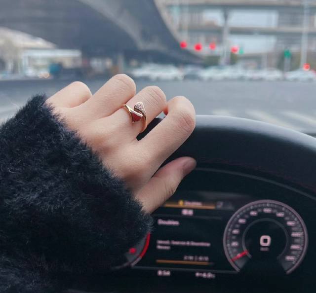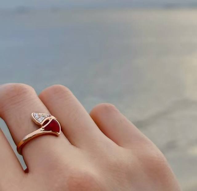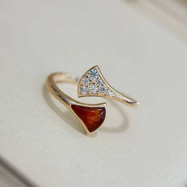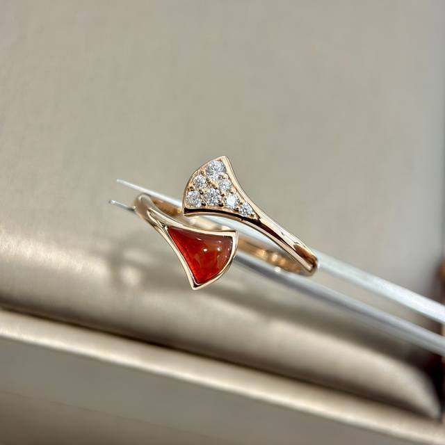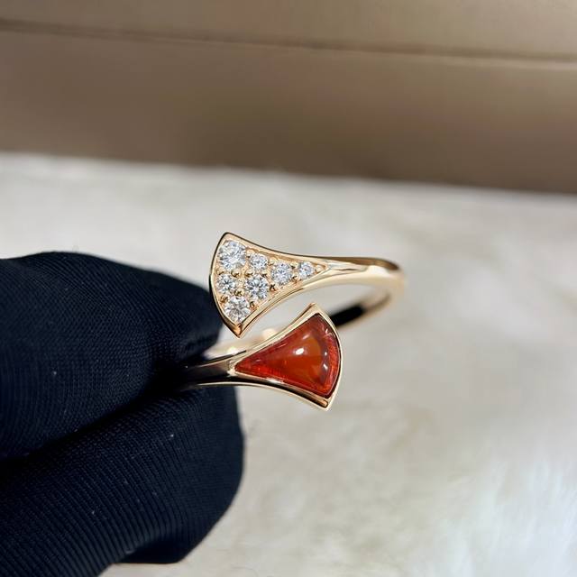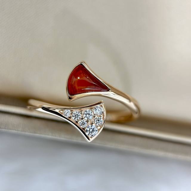 A0361 Bv Diva series full diamond natural red agate open skirt ring selected German imported S925 sterling silver material electroplated with rose gold high quality beautiful open adjustable size rose gold electroplated thick gold sterling silver ring