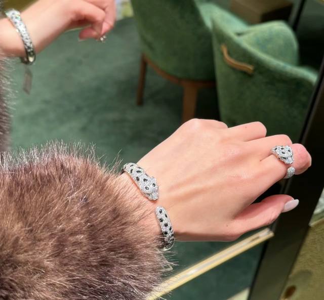 A0721 Kaja Leopard Series Full Diamond Spotted Leopard Open Ring, Made From Imported German S925 Pure Silver Material With Thick Gold Plating, Ultra-Fine Craftsmanship, And High-Quality High-Carbon Diamonds. Available In Rose Gold And Platinum, Two Colors In Stock.