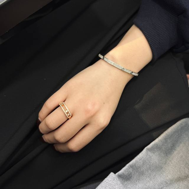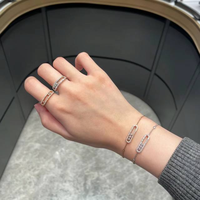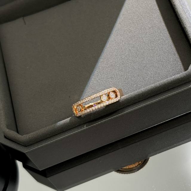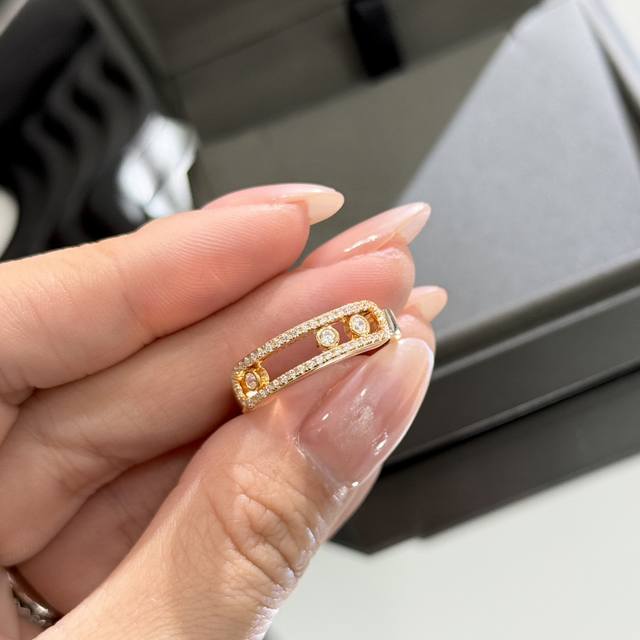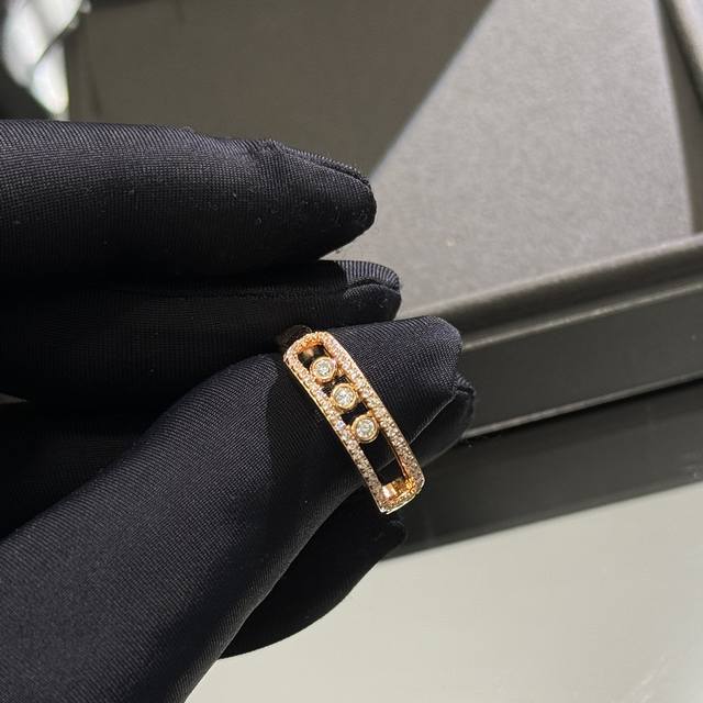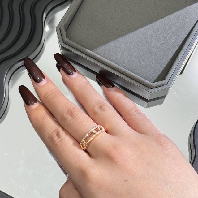 A0808 Messina New Three-Diamond Sliding Ring, made of selected German imported S925 sterling silver, plated with 14K gold, superb craftsmanship, versatile summer minimalist style, rose gold, size 678 sterling silver ring.