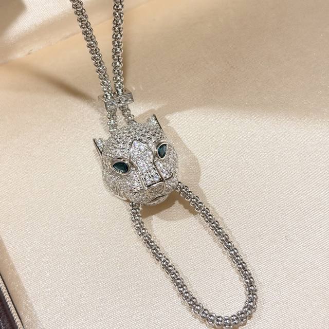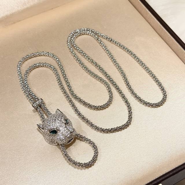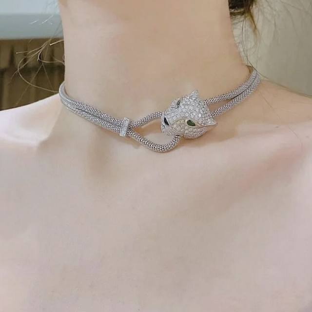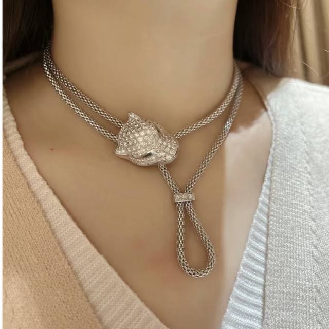 A0876 New Designer "Get Rich Quick" Series Leopard Full Diamond Pull-Out Necklace - Original Custom Made: High-end jewelry craftsmanship, 925 sterling silver micro-set with high-carbon diamonds, 18K gold thick plating, creating a lifelike and powerful piece. Super nice, comparable to the genuine article. Electroplated thick gold plating. Multiple ways to wear this sterling silver necklace.