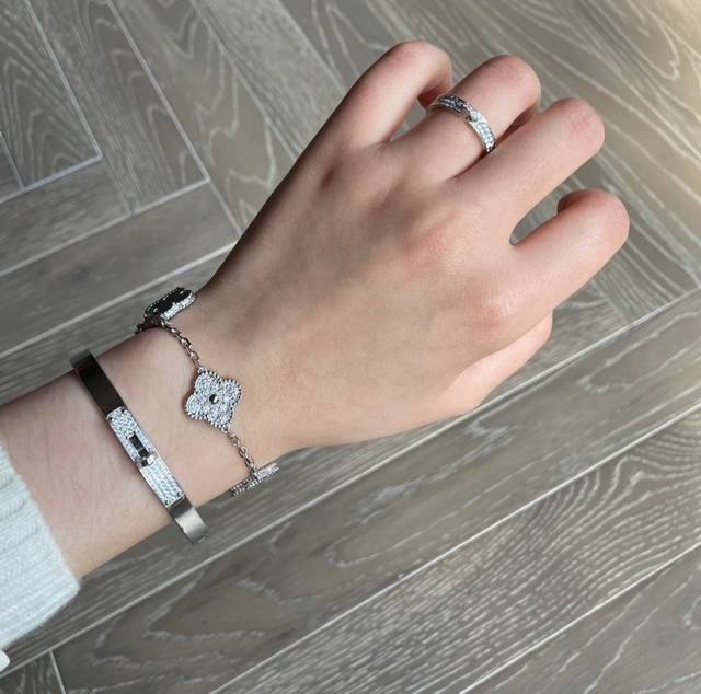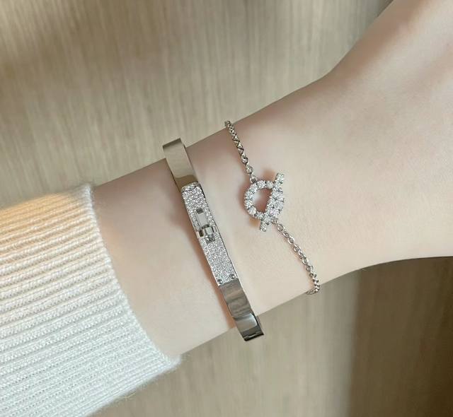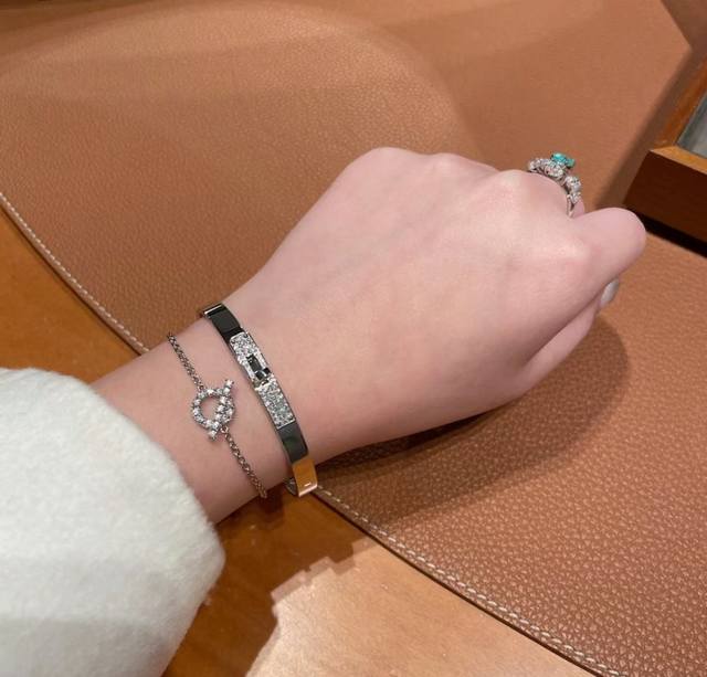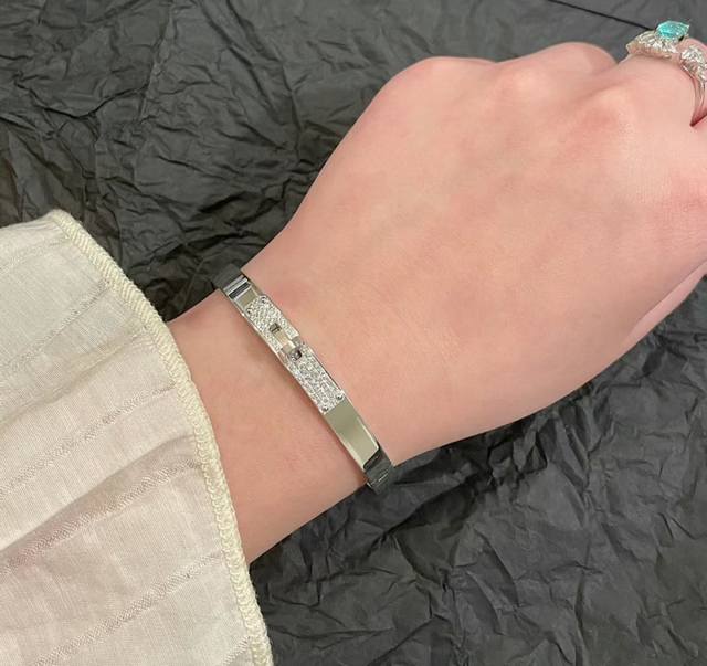 A1051 Popular belt buckle half diamond bracelet, the same style as all goddesses and stars, high-end custom 925 sterling silver gold-plated, K gold texture, exquisitely inlaid with high-carbon diamonds. It's really good to use it. Original version, open mode, platinum electroplated thick gold sterling silver bracelet