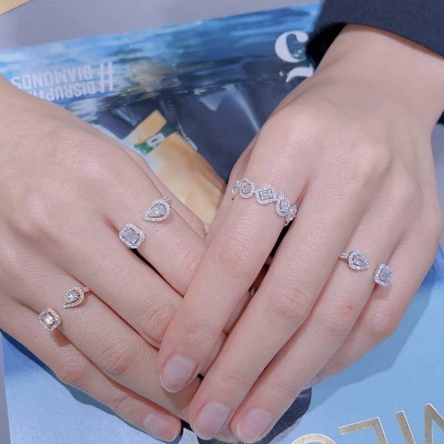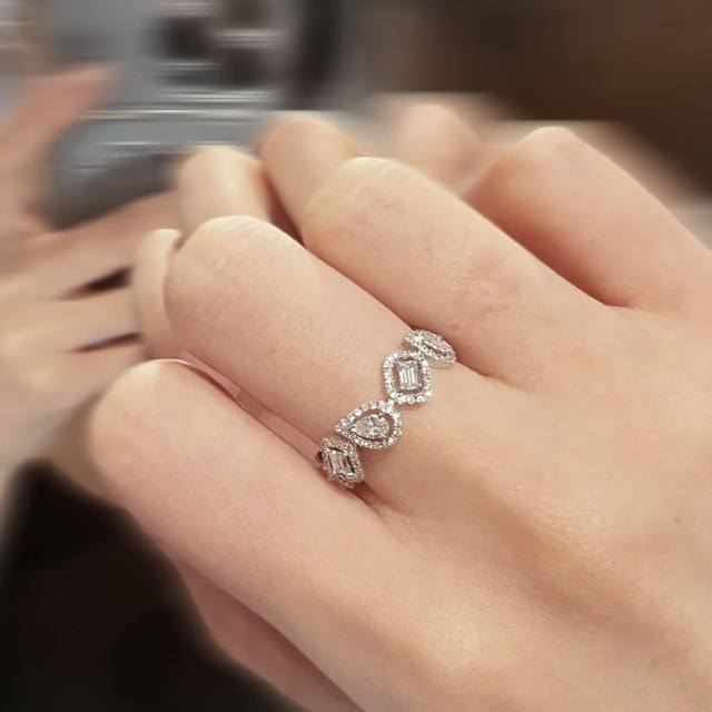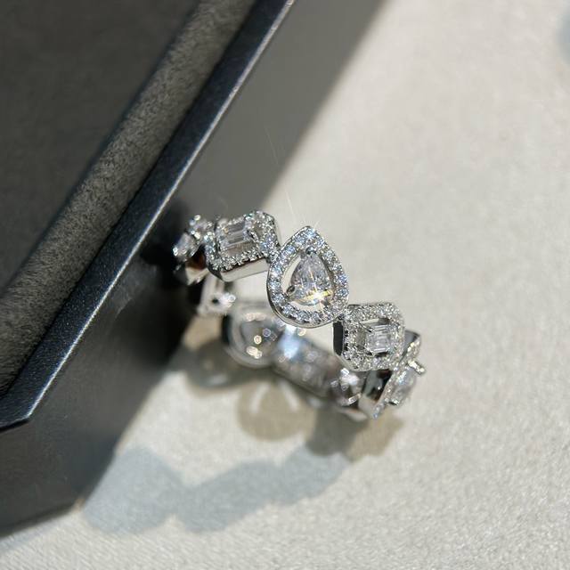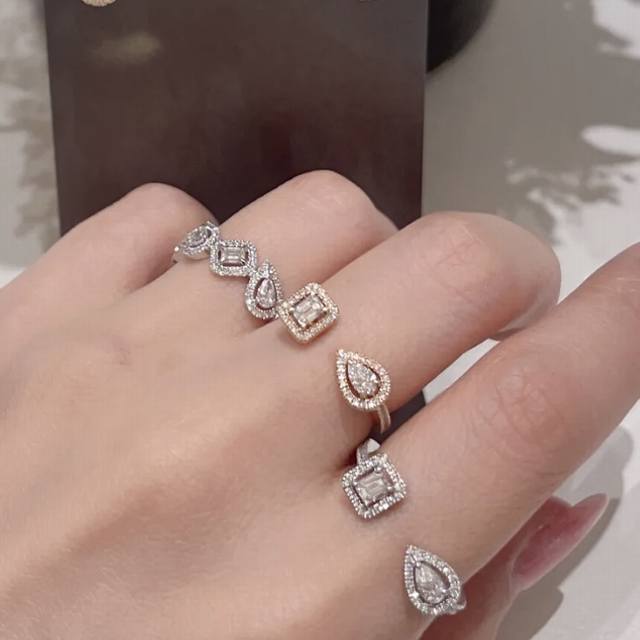 A1265 French luxury and romantic brand Messika square diamond teardrop irregular ring, micro-pave technique, 18K gold diamond ring, original imported 925 sterling silver plated with 18K gold, luxurious floral design, versatile and timeless, a beautiful sight. Platinum size 6789 sterling silver ring.