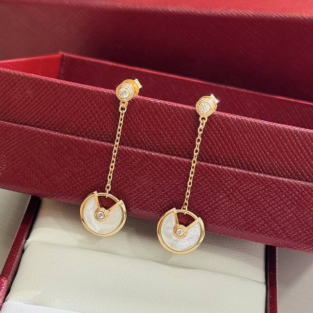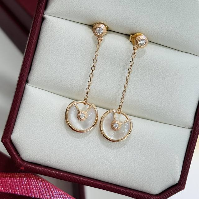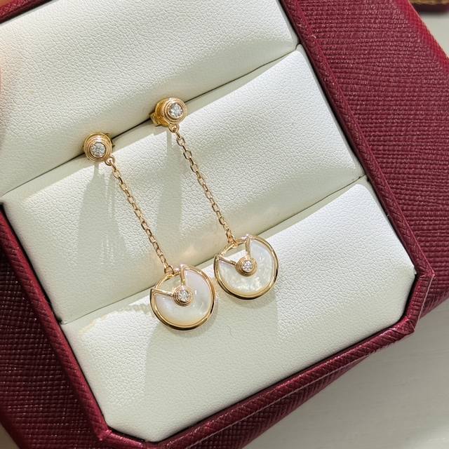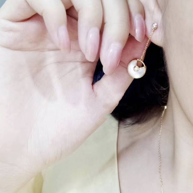 A1580 Highest sterling silver edition, Kajia UFO amulet tassel earrings, top-quality craftsmanship, 925 sterling silver, custom details, fine workmanship, carved with mother-of-pearl, symbolizing protection, unlocking a lucky amulet to protect your happiness. This designer style, full of diamonds, luxurious upgrade, looks amazing, and has a superb texture. This rose gold-plated, thick gold sterling silver stud earrings are