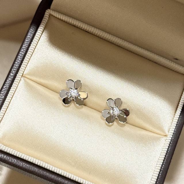 / A2843 Vca Frivole series small clover polished earrings feature delicate flowers