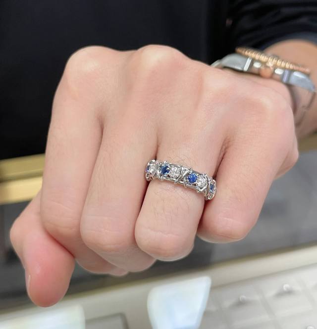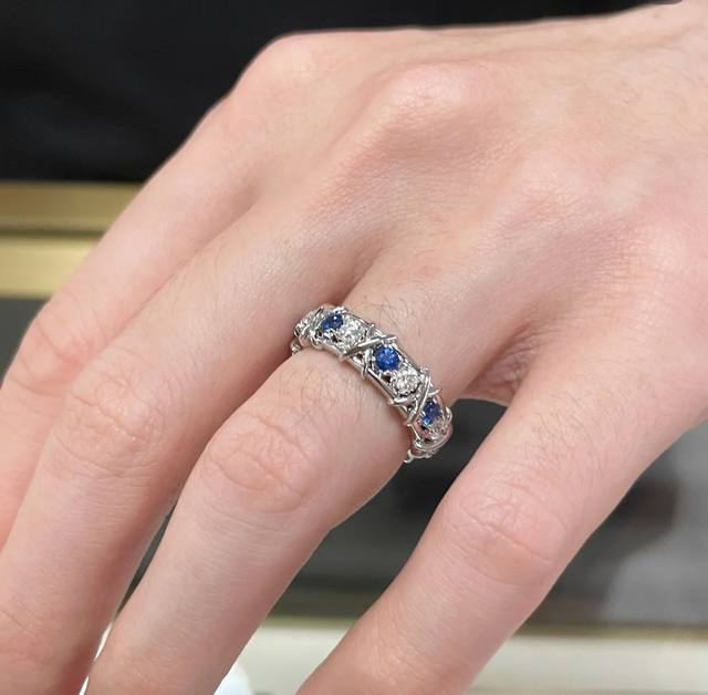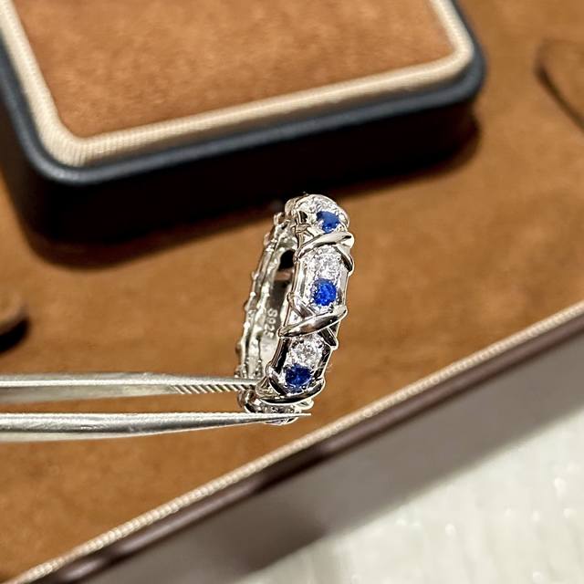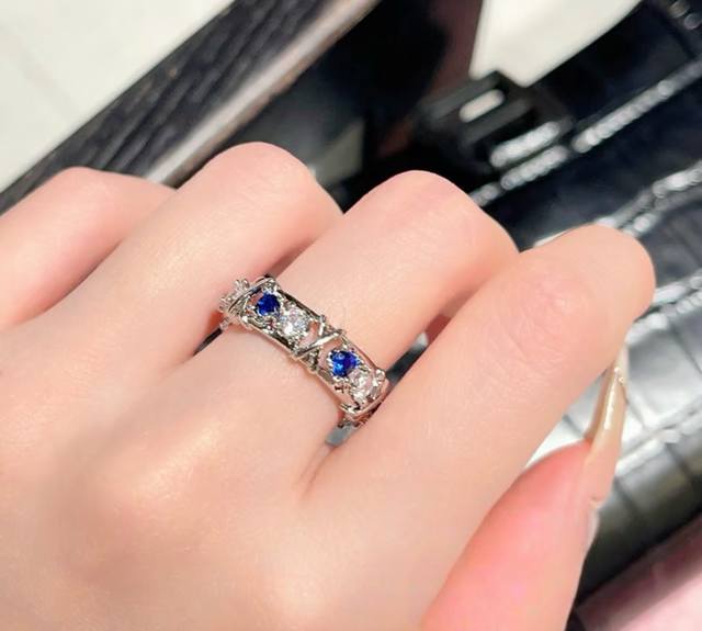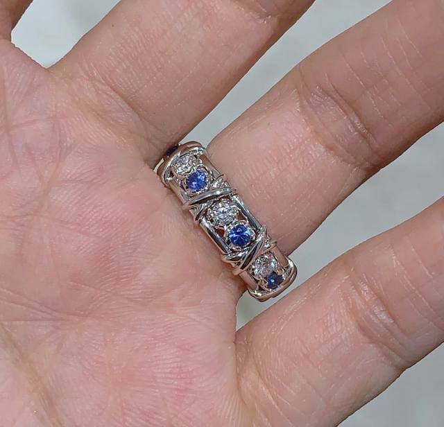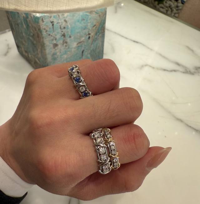 A3252 Brand new and popular T-brand new wide sixteen-diamond blue and white diamond cross ring, super popular diamond ring, hot high-end cross gold S925 sterling silver inlaid with imported top-grade zircon, exquisitely inlaid, perfect and elegant, irresistible beauty, platinum gold electroplated thick gold, 678 yards full sterling silver ring