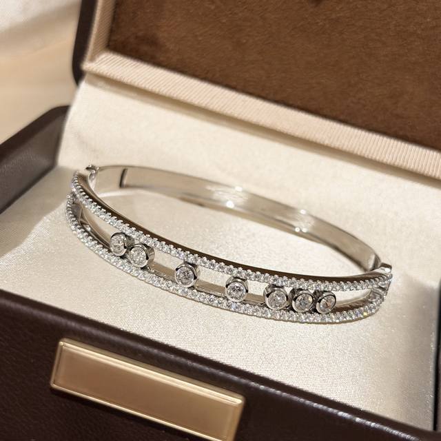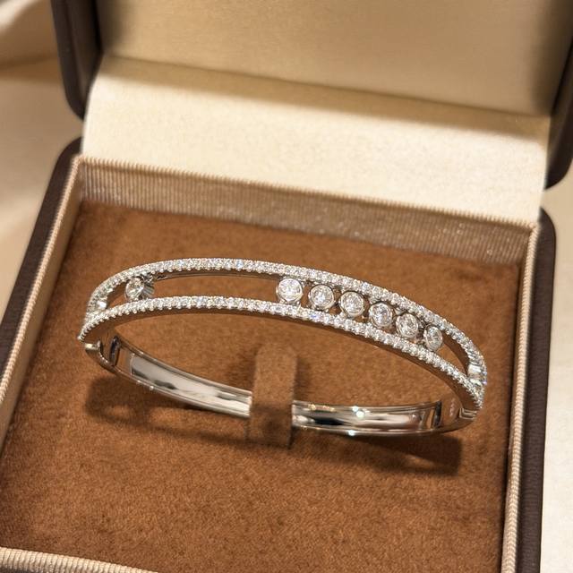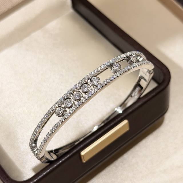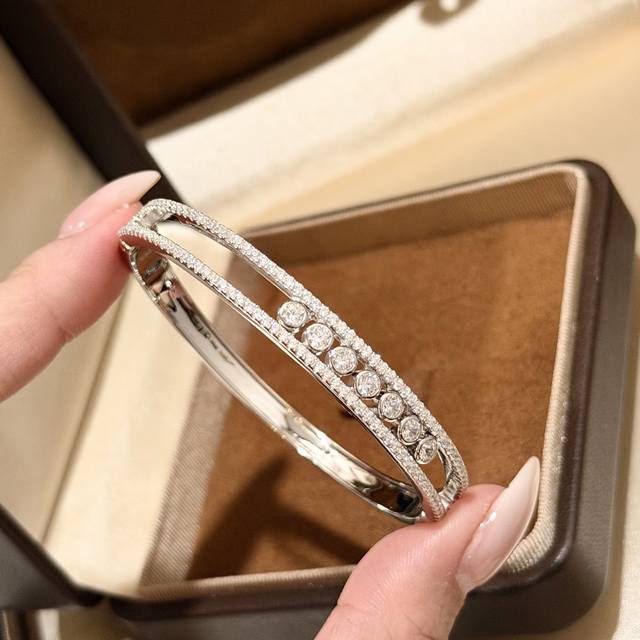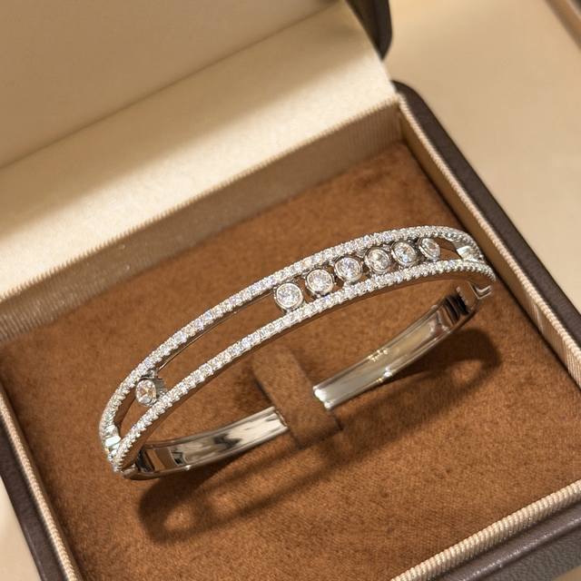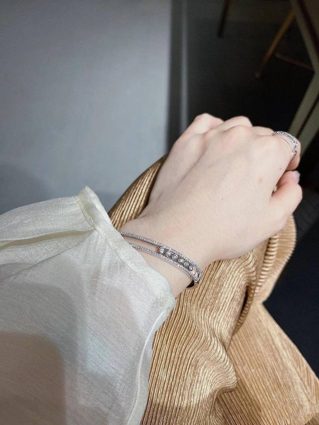 A3904 The hottest jewelry brand in Hollywood, Messika, presents a new luxurious seven-diamond sliding bracelet, exquisitely crafted in 925 sterling silver plated with K gold. A Parisian independent designer jewelry brand favored by fashionable socialites, featuring rolling diamonds. A brand beloved by young women, this electroplated sterling silver bracelet is available.
