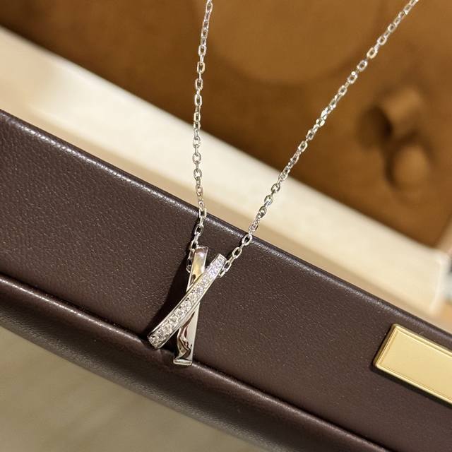 A3944 This simple and versatile cross-section semi-diamond necklace features a simple and elegant design, exuding refined elegance and understated confidence. It's both delicate and striking. Original 925 sterling silver is inlaid with brilliant-cut diamonds; this refined and elegant new model exudes a sense of design. A more creative and bold sterling silver necklace with thick gold platinum plating.