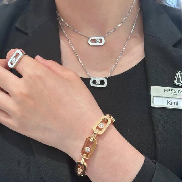 A4262 Messika New Large Single Diamond Sliding Necklace, High-End S925 Sterling Silver and K Gold Craftsmanship, Comparable to Genuine Products with Real Gold and Real Diamonds. We use exclusive German imported polishing technology to set 5A diamonds, platinum gold plating, and thick gold plating on the sterling silver necklace.