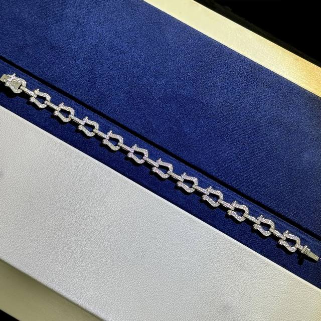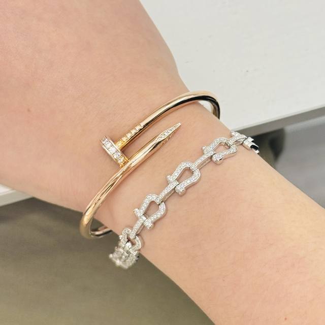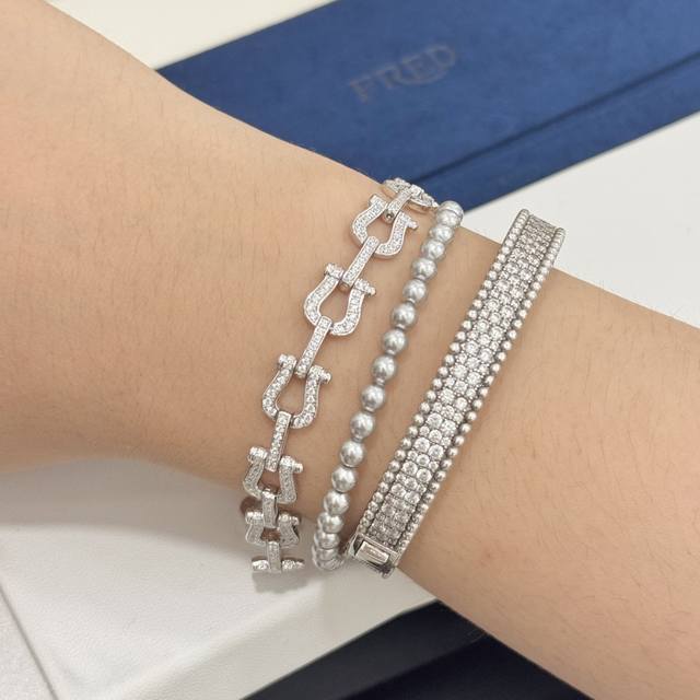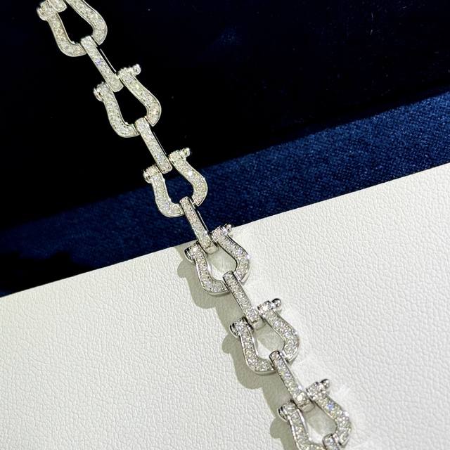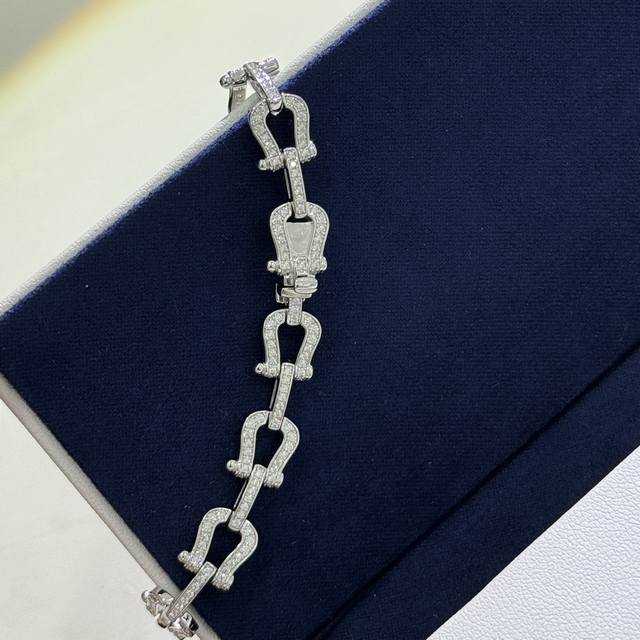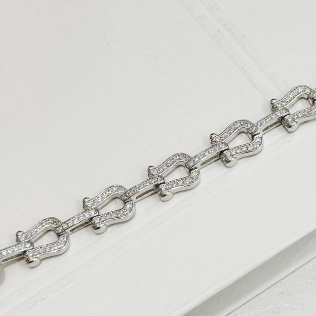 A4402 Fred Full Diamond Heavy Horseshoe Buckle Bracelet, High-end Fashionable and Exquisite Force Series Bracelet, Custom-made, 925 Sterling Silver with Thick 18K Gold Plating, Exquisite Craftsmanship, Micro-set Full Diamond Buckle, A Must-Have Item for Fashionistas and Influencers, Elegant and Sophisticated Sterling Silver Bracelet