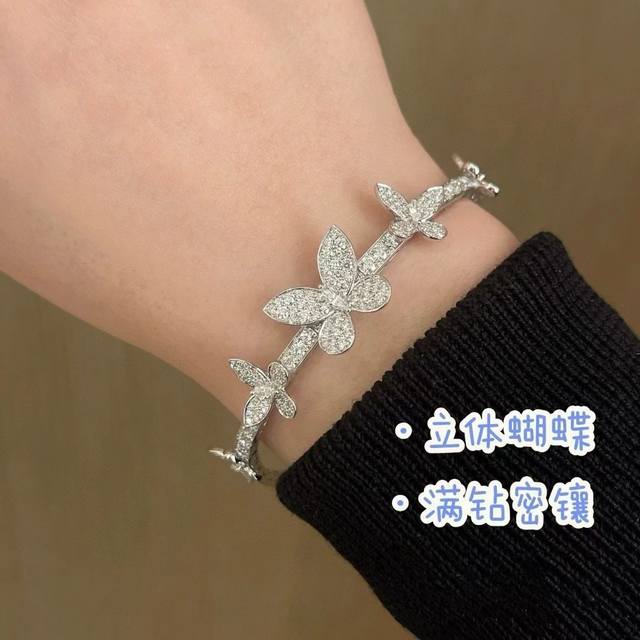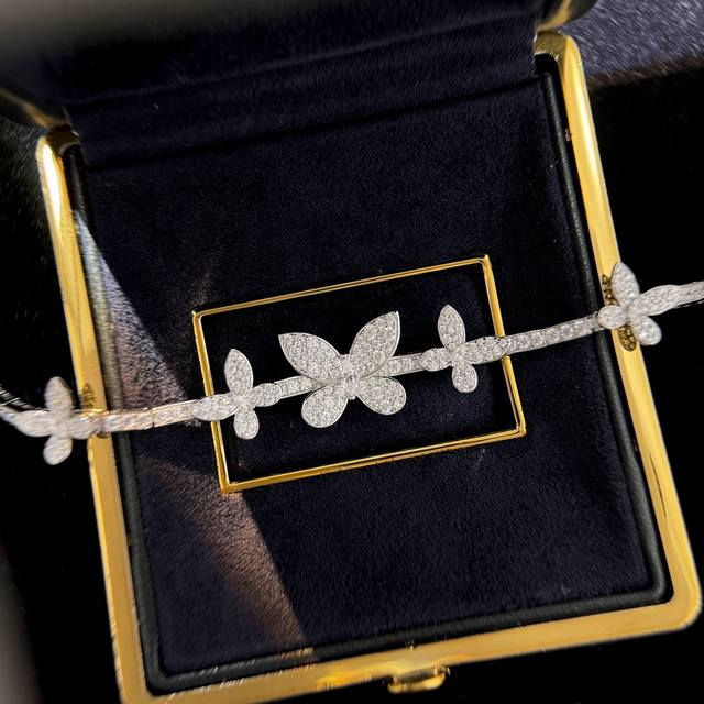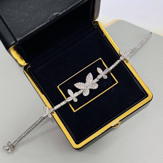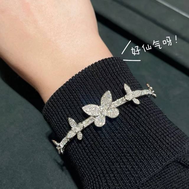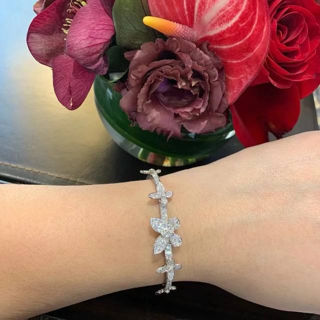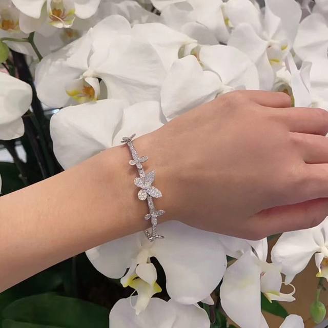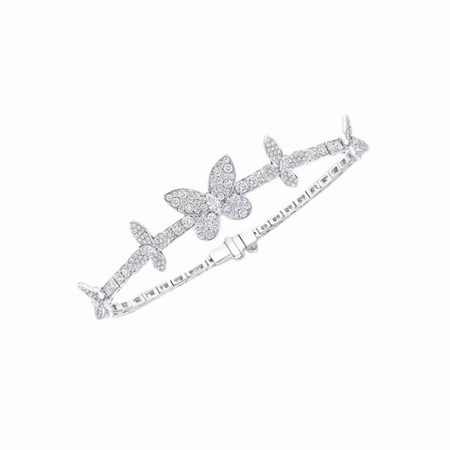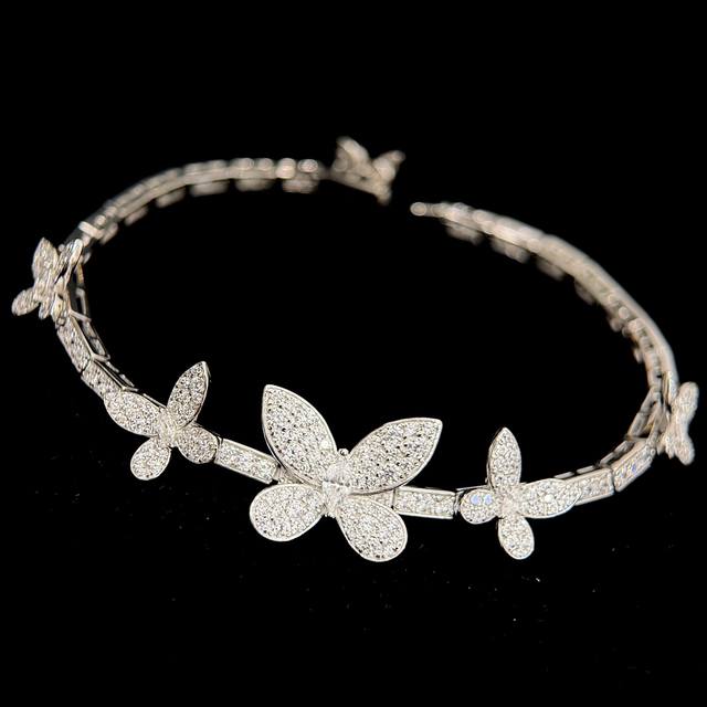 A4677 The latest butterfly bracelet with five butterflies and full diamonds, now available at the official Graff flagship store. The butterflies are perfectly proportioned. Seemingly simple, yet meticulously crafted, this bracelet features custom-made high-carbon diamonds, a perfectly proportioned design, and impeccable beauty. It appears very lively. Made of S925 sterling silver plated with white gold, it is hypoallergenic and will not tarnish. A simple, classic, and elegant sterling silver bracelet.