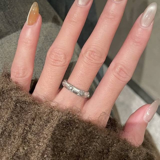 A5276 Independent designer model, popular in the fashion circle, exquisite eight-diamond brushed ring, high-end custom hand-brushed and polished S925 sterling silver, micro-inlaid with top-notch craftsmanship, 18K gold-plated, a must-have item for influencers and fashionistas, super beautiful. Platinum 678 size sterling silver ring
