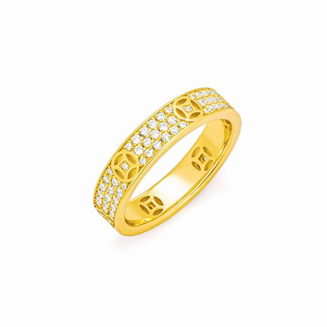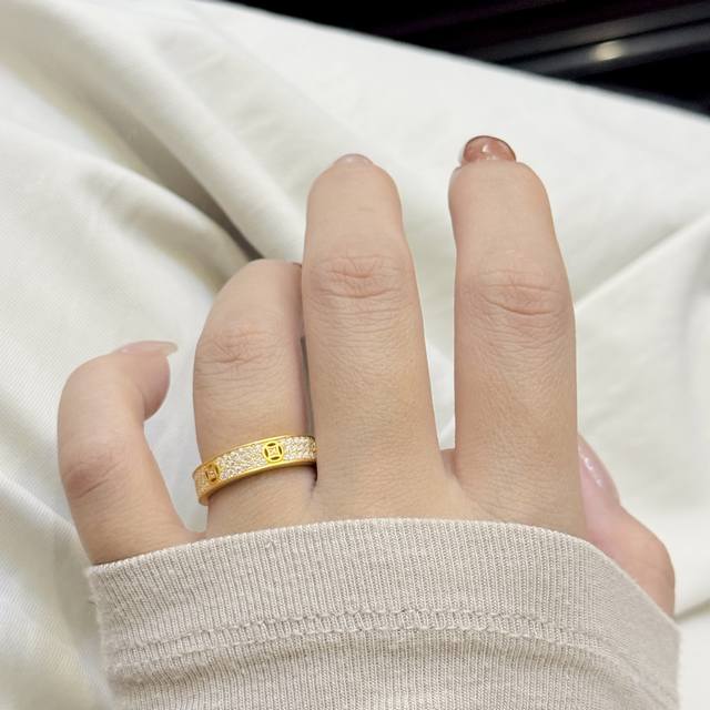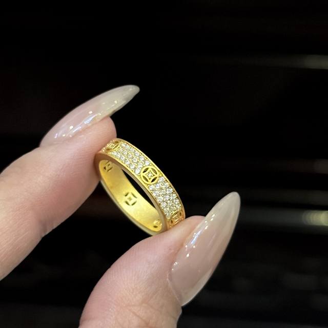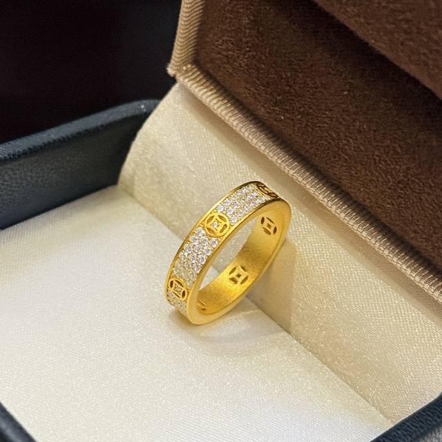 A5588 New antique gold craftsmanship lucky copper coin frosted three-row diamond ring with superb details, especially suitable for everyday wear. Grab it now if you like it! S925 sterling silver with thick gold plating, size 678 sterling silver ring.