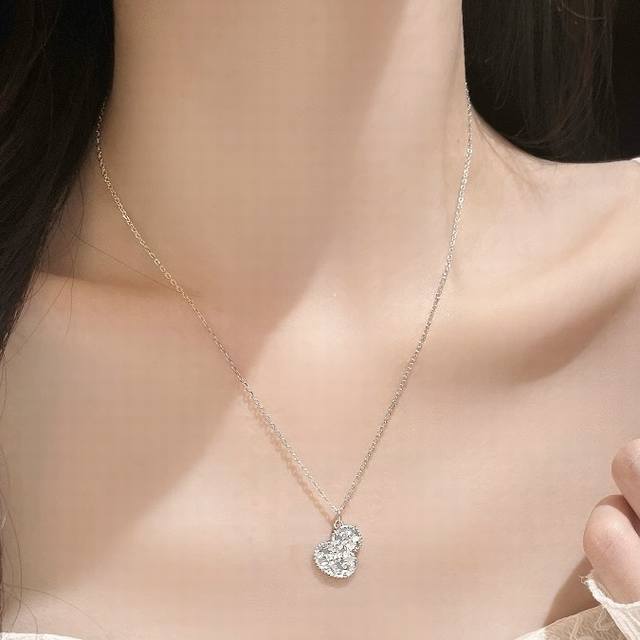 A5891 Ancient craftsmanship new Chinese style crushed ice gourd necklace with a high-end feel and adjustable full body S925 sterling silver material CNC process electroplating thick gold platinum sterling silver necklace