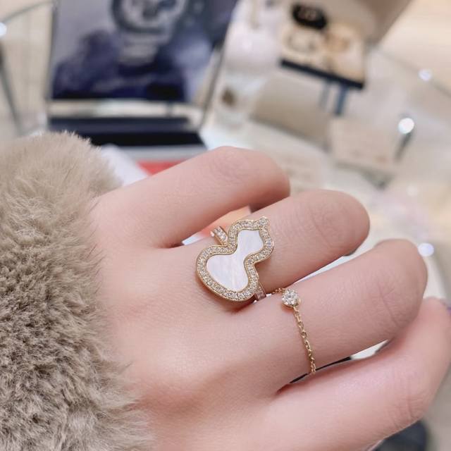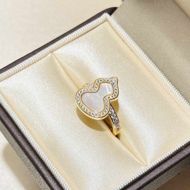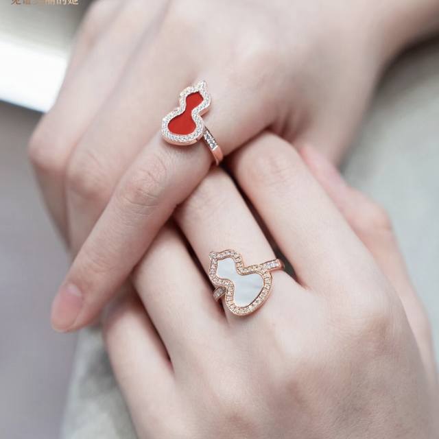 A5923 Wulu Lace High Jewelry Gourd Series White Mother-of-Pearl Ring, High-End Custom Made in 925 Sterling Silver with Red Agate Inlays, The Overall Shape is Gorgeous and Elegant. Beautiful and Elegant, Rose Gold Electroplated Thick Gold, 678 Sterling Silver Ring Available in Sizes