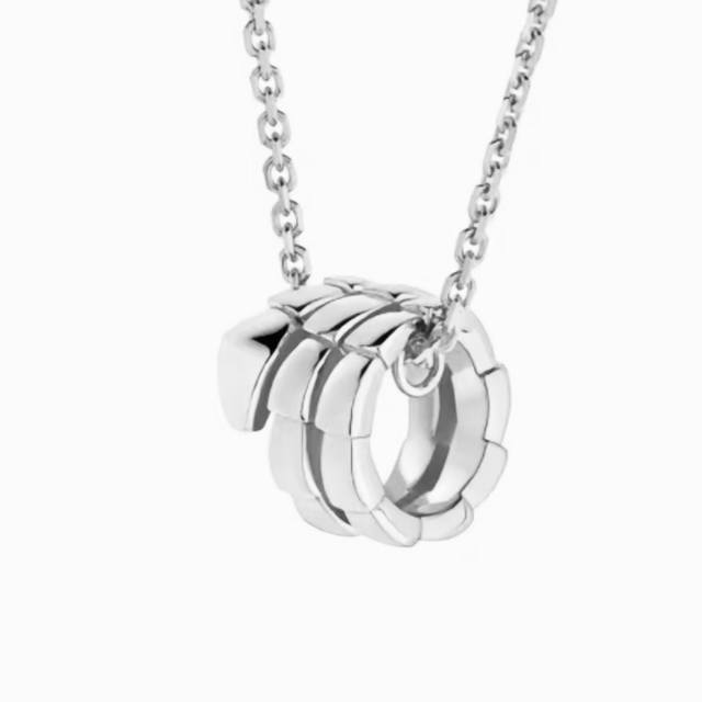 A6056 Bv's hottest new double-layer polished snake necklace is full of texture and is made of high-end 925 sterling silver. Look at the workmanship and details. Perfect polishing. Luxurious and beautiful platinum super fairy