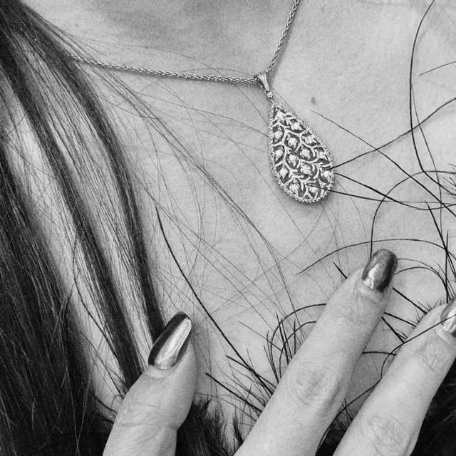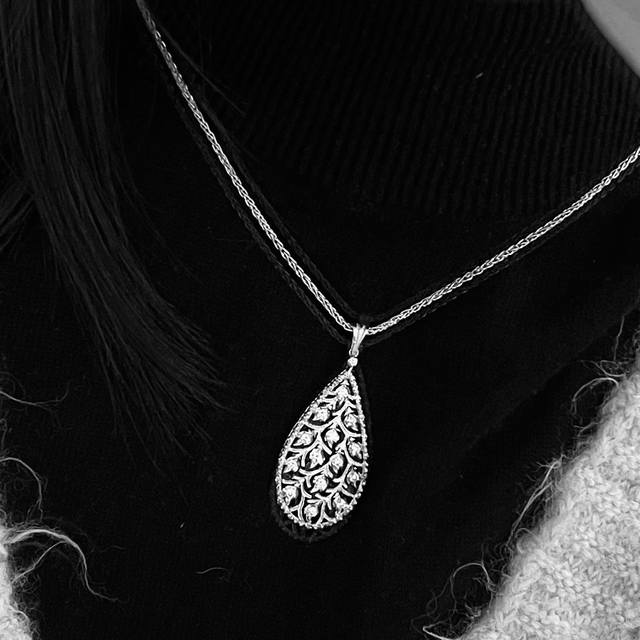 A6261 This new, independent designer's iris leaf vintage lace hollow necklace features delicate and elegant textures accented with blingbling diamonds. Beautiful, alternating garlands and fan-shaped designs feature a central oval leaf, cut tones, and color-coded gold carving. The necklace is inlaid with 925 sterling silver and features 18K thick gold upgrades and premium electroplating. This elegant and captivating Ramage series floral and leaf carving showcases the vibrant, spring-like atmosphere, creating a timeless feel. This stretchable, adjustable sterling silver necklace features