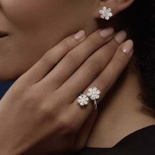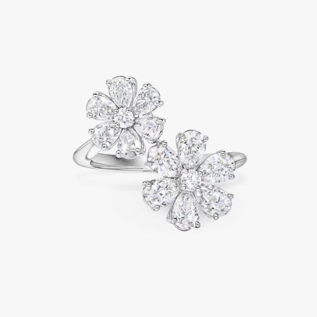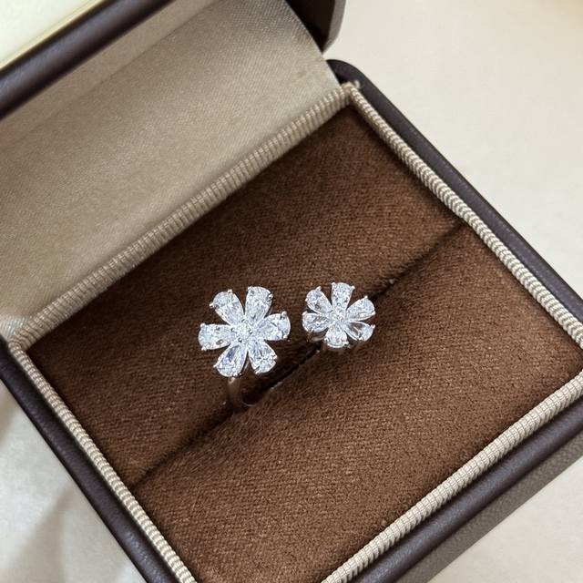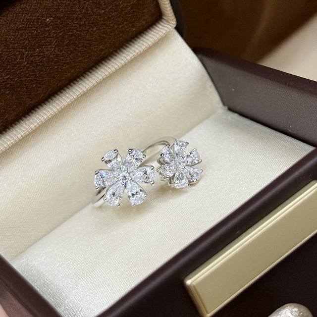 A6640 Hw High Jewelry Double Flower Full Diamond Open Ring. Celebrity-like, lifelike, exquisitely cut, high-end custom-made. 925 sterling silver inlays. Luxurious and elegant design, comfortable and beautiful to wear. Non-allergenic and non-fading. Super strong, thick gold-plated platinum open, adjustable sterling silver ring.