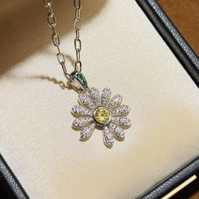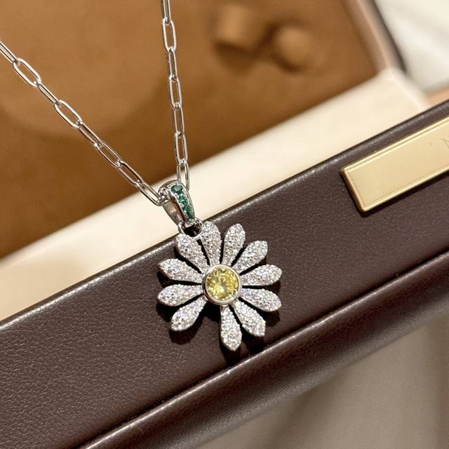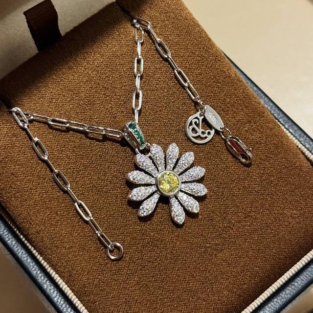 A6643 This vintage daisy necklace, featuring a yellow diamond and a full diamond notch, is the same popular piece from G-Dragon. This vintage and romantic necklace is a conversation with time every time you wear it. The delicate and vivid daisies on the earrings appear to be quietly blooming. Each petal is meticulously carved, exuding a vintage feel that transports you back to a poetic era. This thick gold-plated sterling silver necklace is
