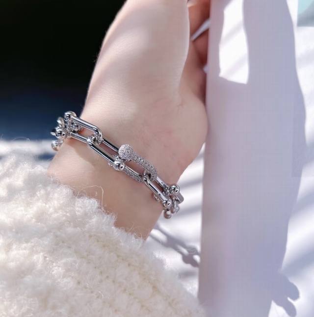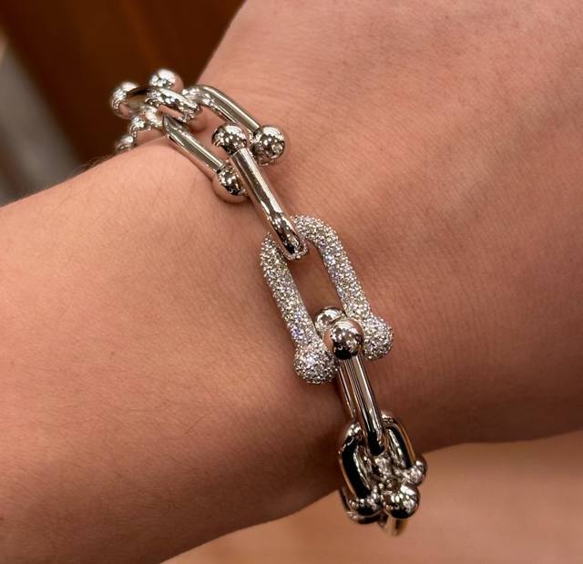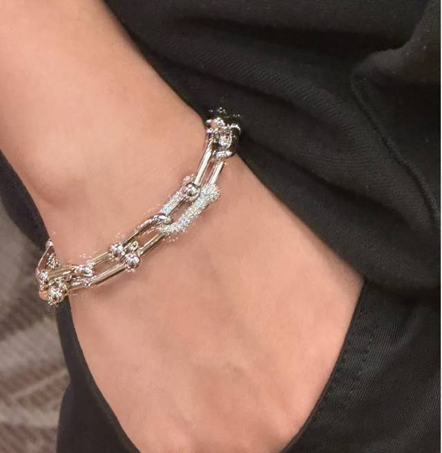A6666 This T Hardwear series U-shaped joint lock bracelet, a favorite among influencers and bloggers, may seem simple, but it actually requires 9981 steps to string the links together, creating a three-dimensional , avant-garde design. Even the most sophisticated of mix-and-match experts can't put it down. Just scroll through Instagram and you'll see all sorts of stylish men and women swooning over it! Fashionistas shouldn't miss this! Get it! Platinum-colored thick gold-plated sterling silver bracelet