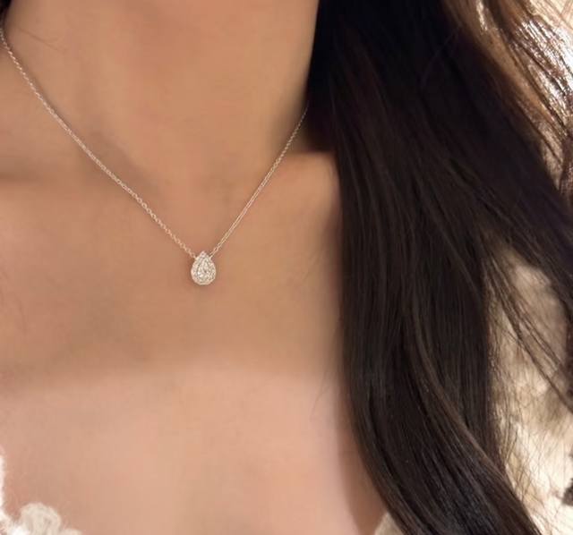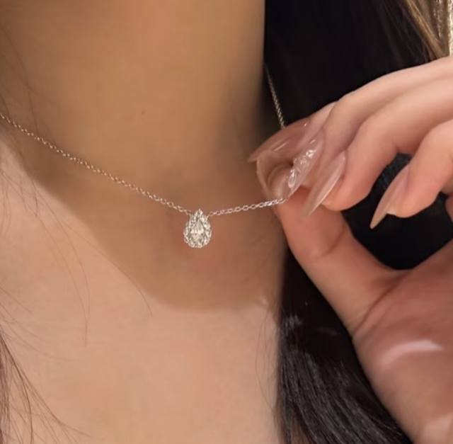 A6701 This new Graff teardrop necklace is simple yet elegant, with perfectly proportioned lines. While seemingly simple, it boasts exquisite craftsmanship and a well-defined eight-heart, eight-carbohydrate diamond. The perfectly proportioned design possesses impeccable beauty and a very lively feel. Made of S925 sterling silver plated with white gold, it is hypoallergenic and will not tarnish. A simple, classic, and elegant electroplated sterling silver necklace.