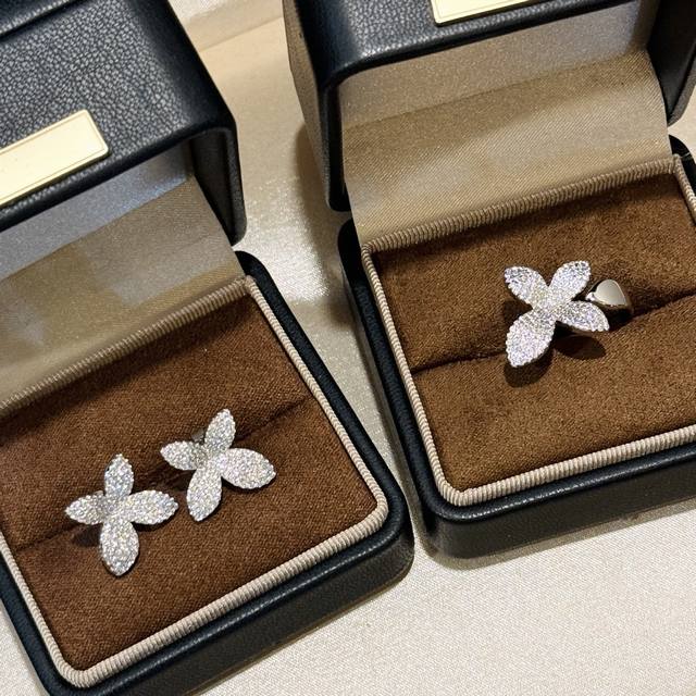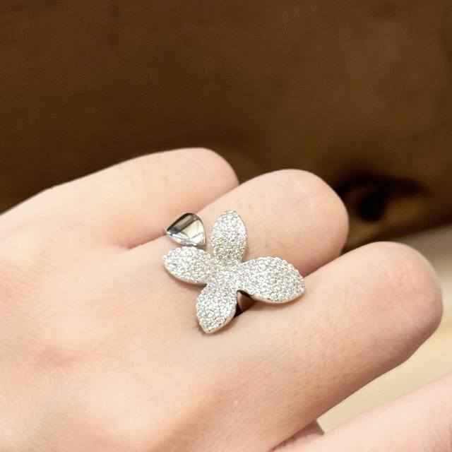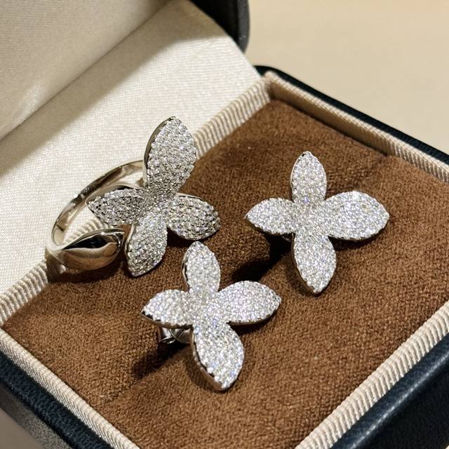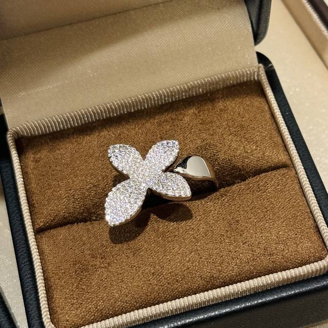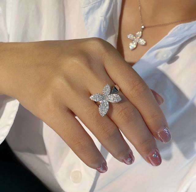 A6727 New high-end jewelry bow-knot open ring with full diamonds. The jewelry uses the top-notch butterfly 7A, lifelike and exquisitely cut. High-end custom 925 sterling silver inlaid with high-carbon diamonds. Bling Bling elegant design, luxurious and noble, comfortable and beautiful to wear. Thick gold-plated open adjustable sterling silver ring