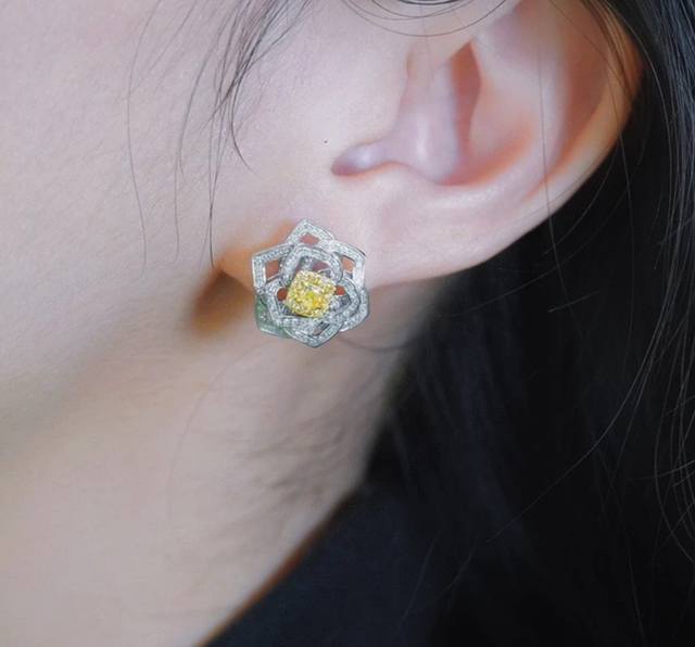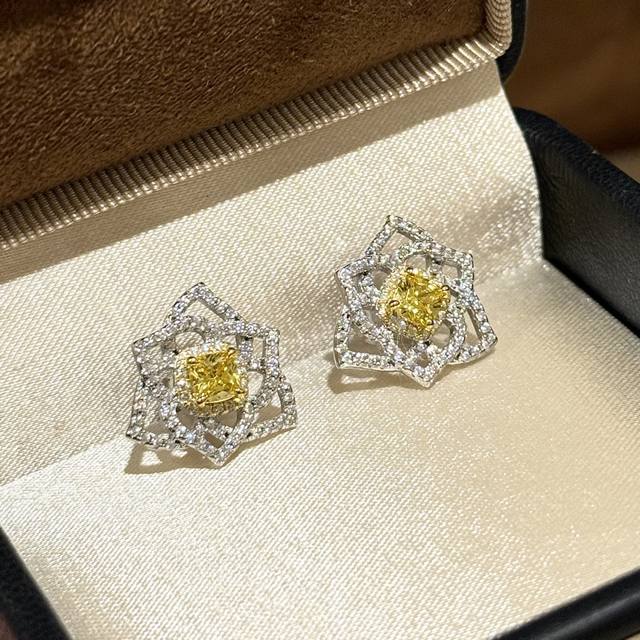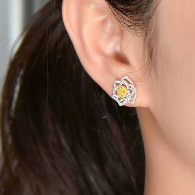 A6731 Piaget's new top diamond jewelry brand, luxury citrine camellia hollow earrings. The most high-end and beloved square diamonds are lifelike, exquisitely cut and elegantly designed. Luxurious and noble, high-end 925 sterling silver needles are original and exquisitely crafted. Superb ~ Excellent wearing comfort