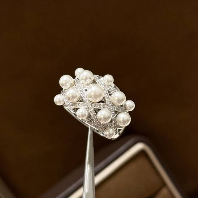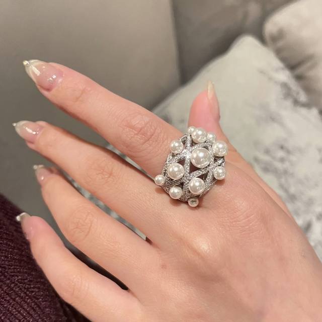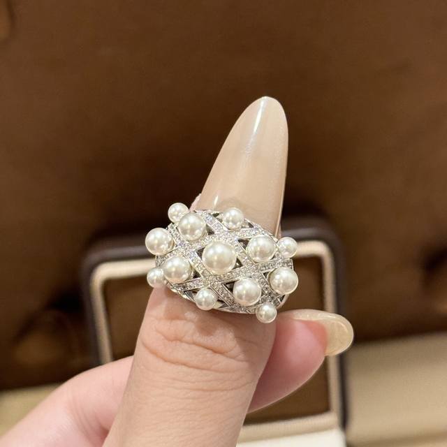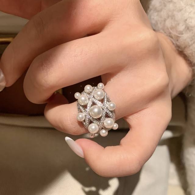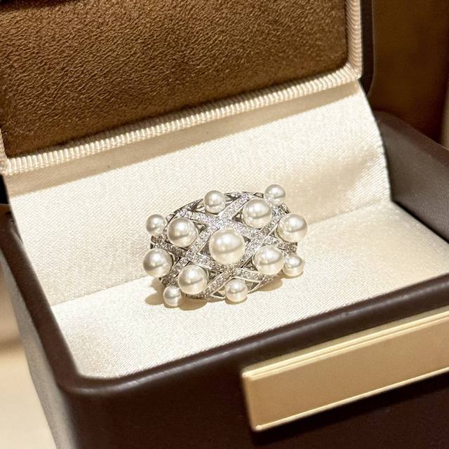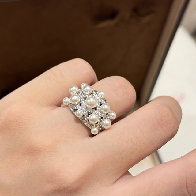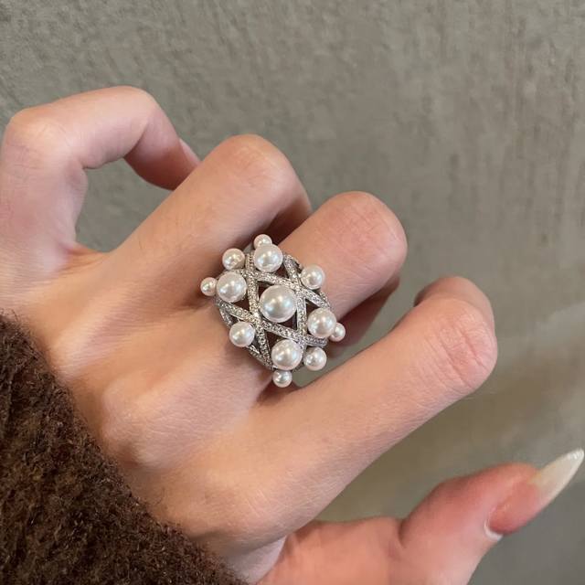 A6846 A luxurious European and American style ring with full diamonds and pearls. Set with AAAAAA grade high-carbon diamonds and natural mother-of-pearl pearls, this trendy 925 sterling silver ring is a must-have for any fashionista. It features thick gold plating and is available in size 678.