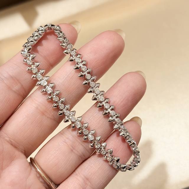 A6897 This is a popular, high-end sterling silver metal-style studded bullet-shaped diamond bracelet from Cartier. It's a very unique and highly sought-after piece. A timeless classic, it's been very popular in recent years. Weighing a full 13g, this S925 sterling silver bracelet features thick gold plating and micro-inlay. Same material, same craftsmanship, different price. Genuine gold feel, platinum-plated thick gold sterling silver bracelet.