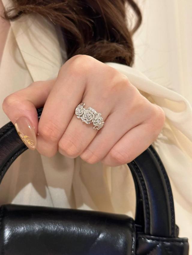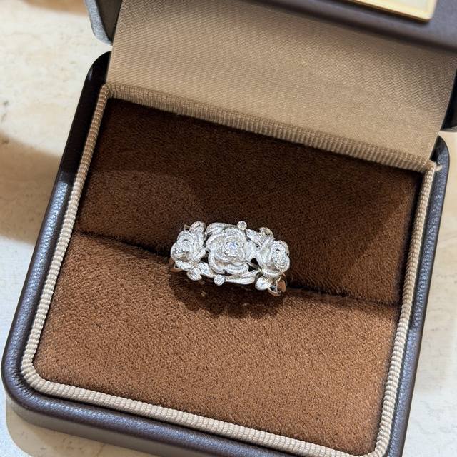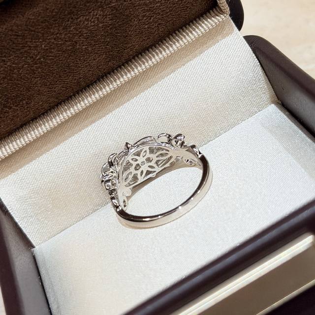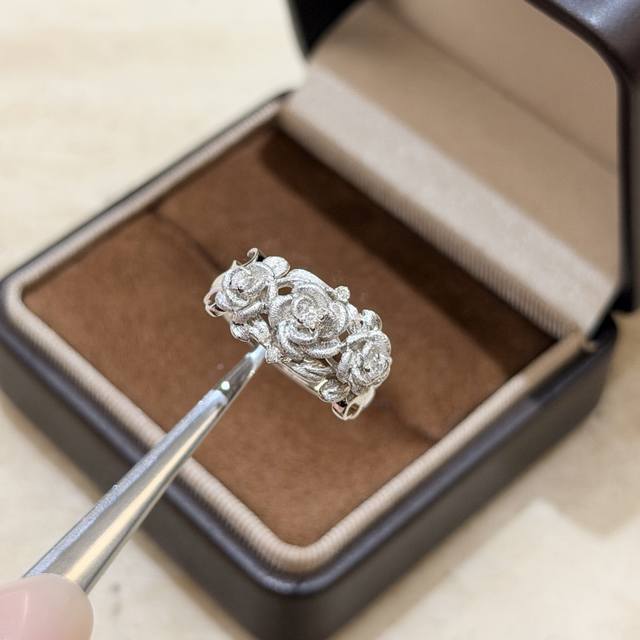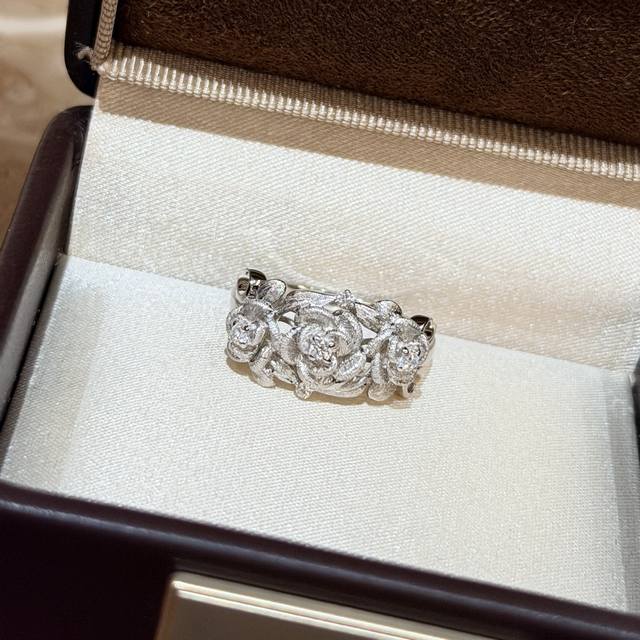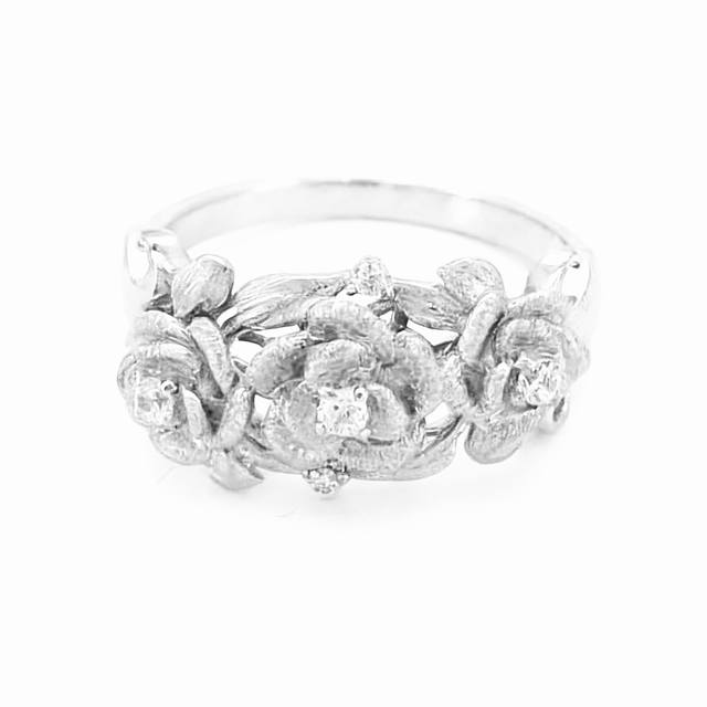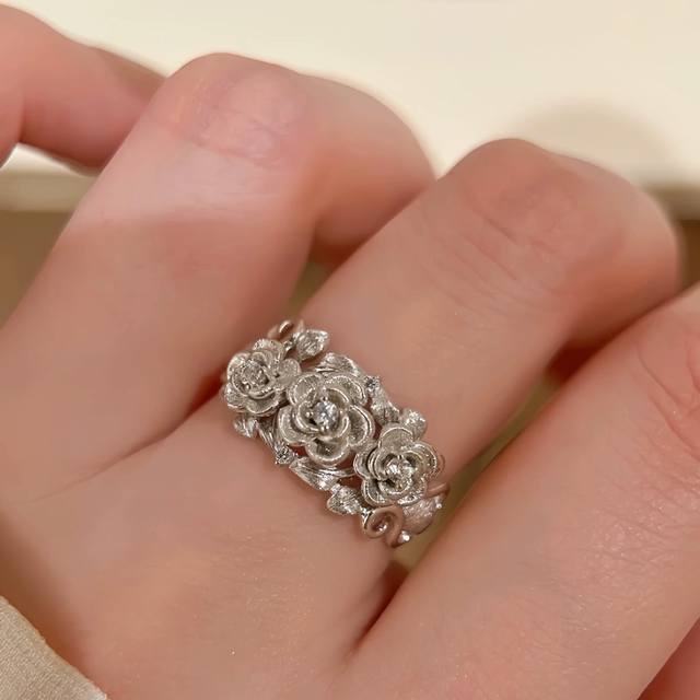 A7175 Independent designer Italian vintage-style brushed floral ribbon ring, French retro high-end exquisite light luxury jewelry. The master craftsman's hand-brushed design is a true test of skill. Made entirely of S925 sterling silver, set with high-carbon diamonds and thick gold plated. Size 678 sterling silver ring.