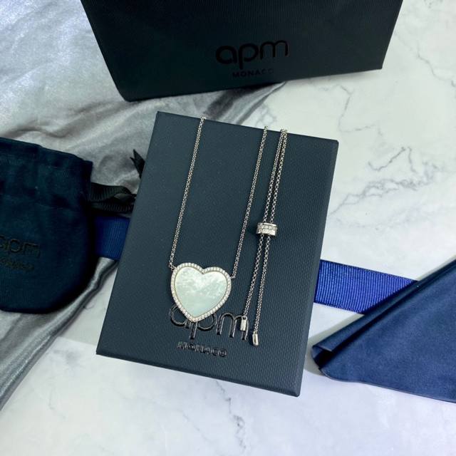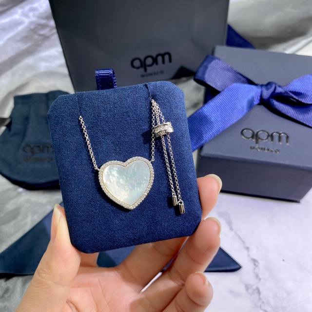 A-grade Monaco White Mother-of-Pearl Heart Adjustable Necklace! A unique heart design, enveloping your neck in romance. The warm mother-of-pearl speaks of love, while the handcrafted micro-set zircon stones add a touch of brilliance. The adjustable clasp allows for flexible chain length adjustment to suit your style.