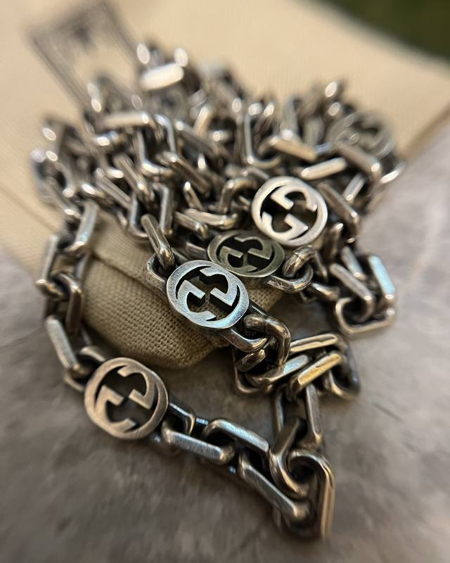 Sterling Silver, Vintage Antique Style, Interlocking Double G Letters, Exquisite Details, Collectible Symbol, Brand Essence