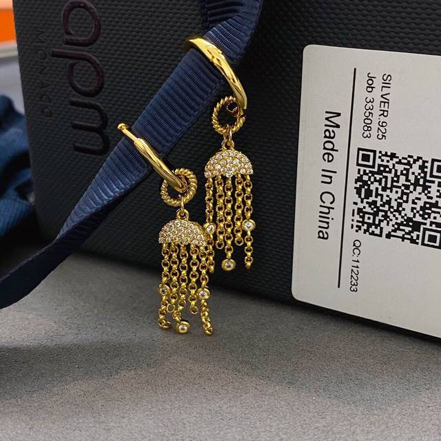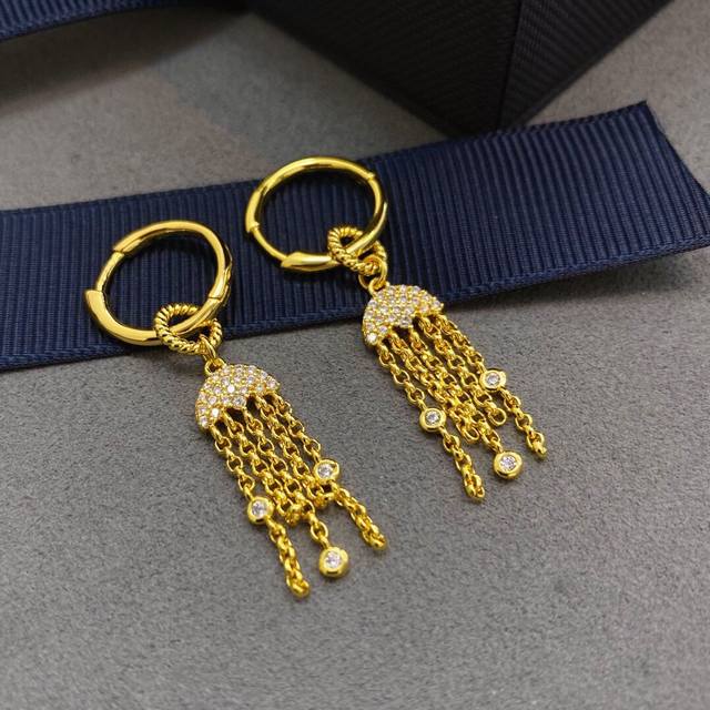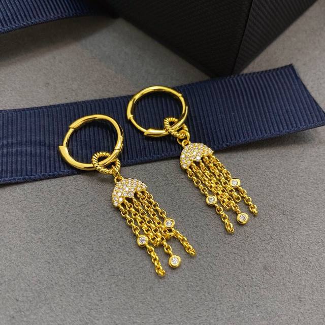 Handmade with Micro-pave Colored Zirconia Stones Product Highlights Enjoy a cool summer with vibrant colors. Awaken a refreshing summer with a unique jellyfish design. Easily create a perfect, stylish, and eye-catching look. The varying lengths of the tassel chains sway with the wearer's movements, adding an elegant touch. The sparkling golden crystal color draws attention.