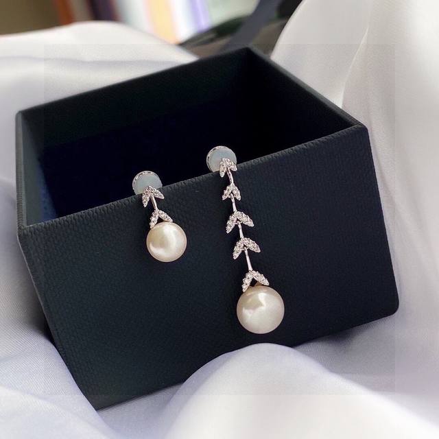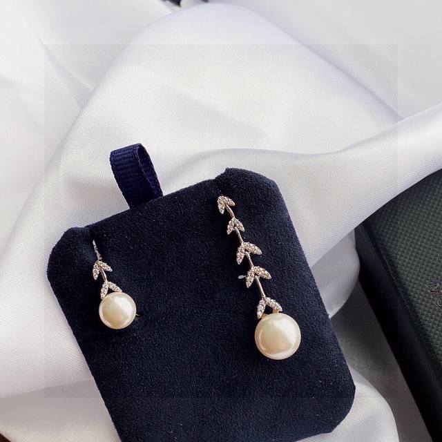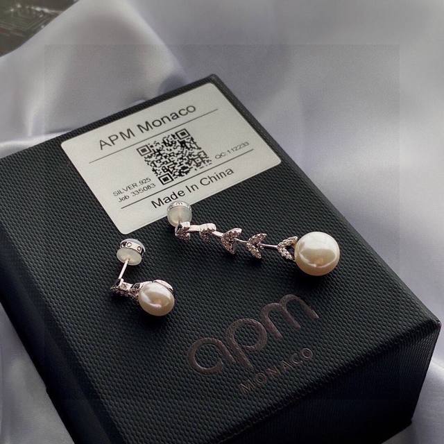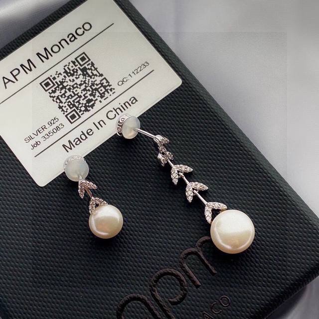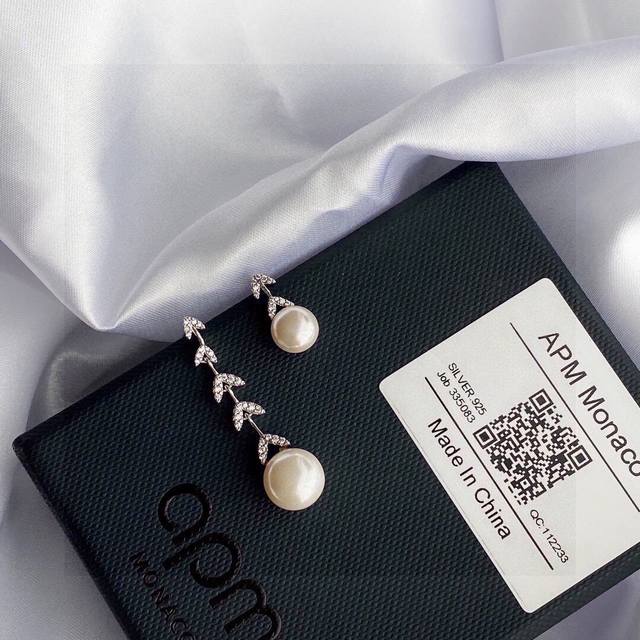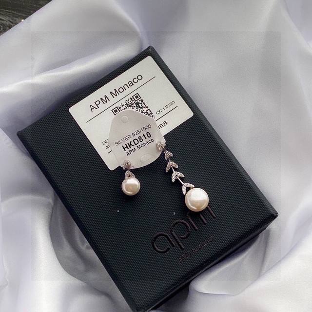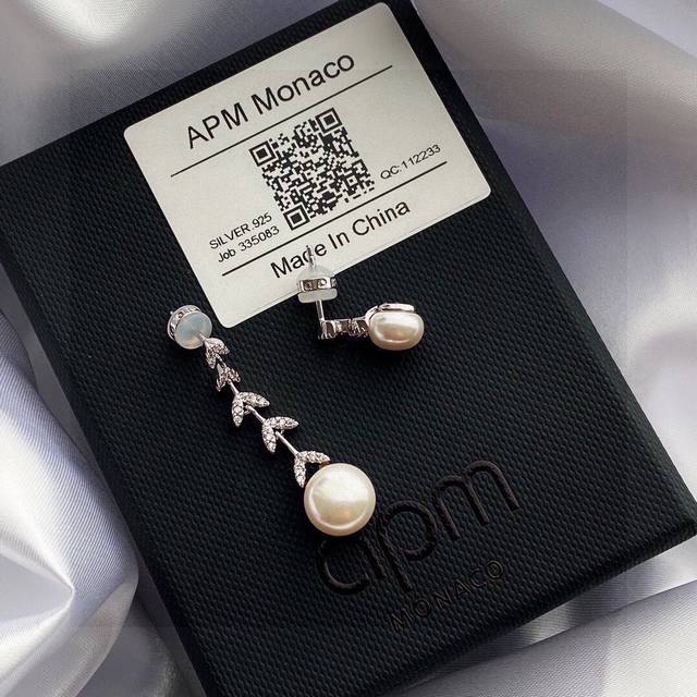 Apm Monaco asymmetrical silver diamond petal earrings with freshwater pearls, embellished with pearl petals, simple and elegant, inlaid with zircon + freshwater pearls.