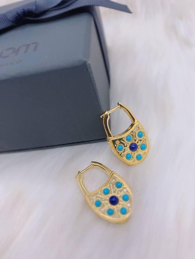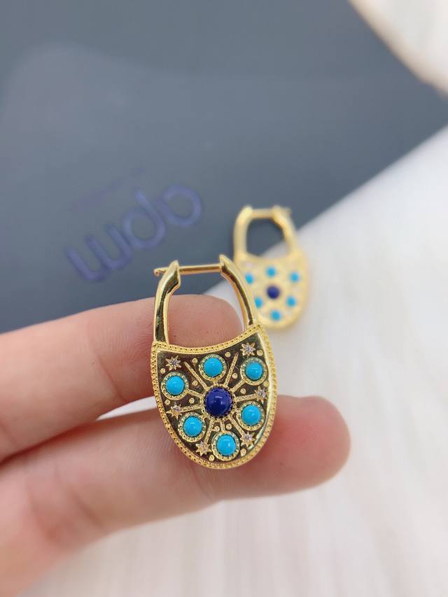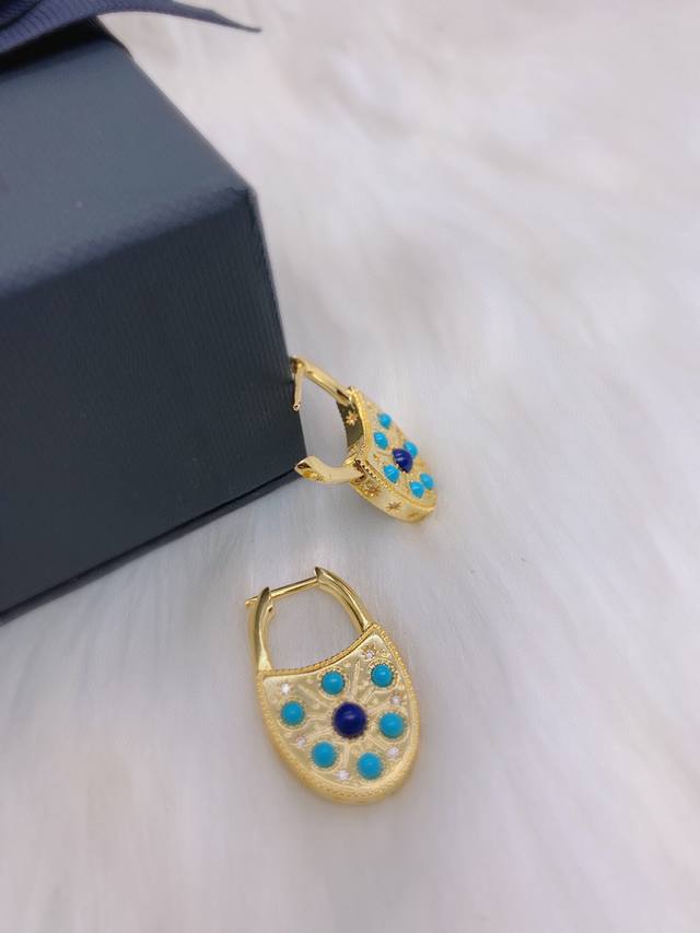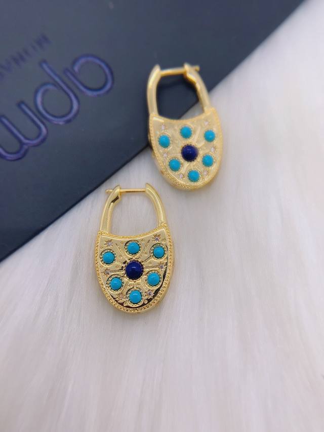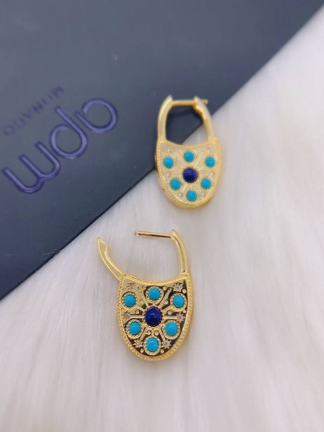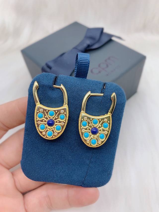 Apm Monaco Blue Padlock Circle Earrings! With an avant-garde design, these earrings create a classic Roman style. The padlock shape is adorned with colorful gemstones, showcasing elegant beauty on the ears. Hand-set rhinestones brighten the overall look, and the golden hue is both novel and classic.