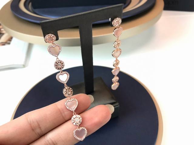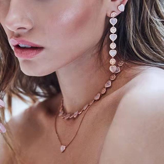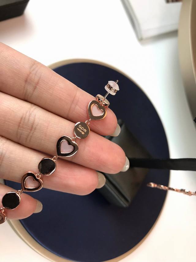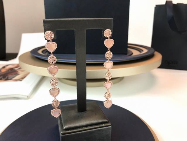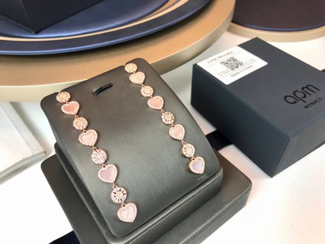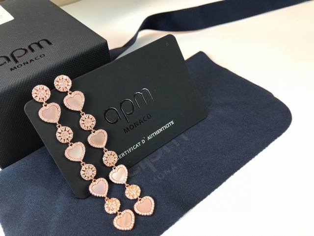 Apm Monaco New Pink Mother-of-Pearl Long Tassel Earrings with Heart Design! The unique heart design envelops your ears with love, while the warm pink mother-of-pearl paired with rose gold interprets feminine elegance, radiating a dazzling light. Simple yet detailed, making every everyday look unique.