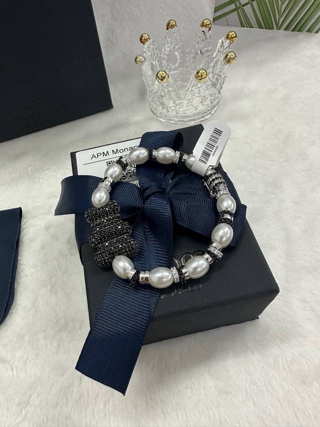 / Apm Monaco Xl Mood Yummy Black and White Pearl Bracelet - Personalized Couple Bi