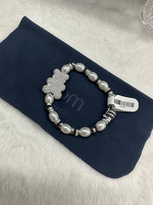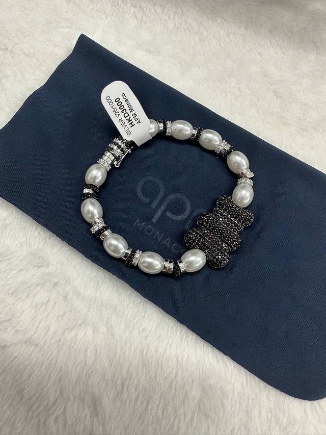 Apm Monaco Xl Mood Yummy Black and White Pearl Bracelet - Personalized Couple Birthday Gift.