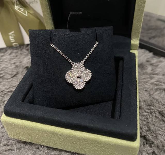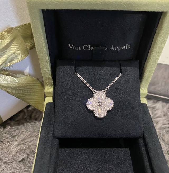 B838 Four-leaf clover full diamond single flower necklace with a super straight shape, diamond-shaped holes on the back, 925 sterling silver polished and electroplated, with a very good luster. Inlaid with eight hearts and eight arrows high carbon diamonds, chain length 40+5, electroplated thick gold sterling silver necklace