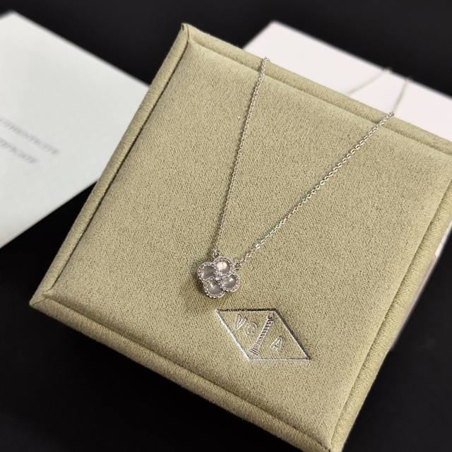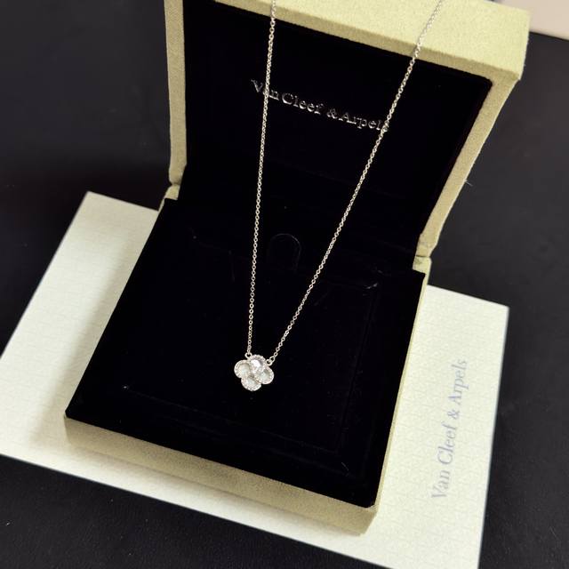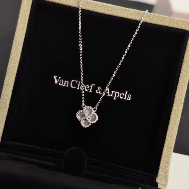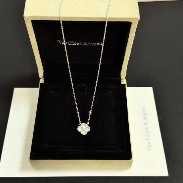 Batch 120 Exquisite Original Van Cleef & Arpels Four-Leaf Clover Necklace, a classic design, same style as the official website, fashionable and trendy. It features a multi-layered metal carving design that makes the petals more three-dimensional. The full diamond setting showcases feminine grace. The four-leaf clover symbolizes luck and happiness, unique and romantic. It blends simple, harmonious lines with the material, and the polishing and finishing highlight its noble elegance.