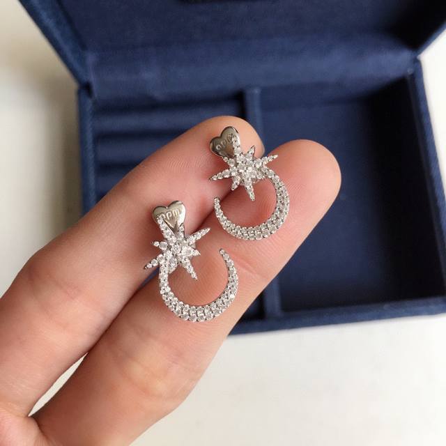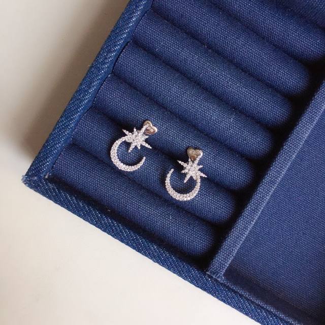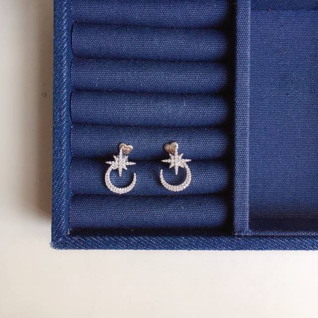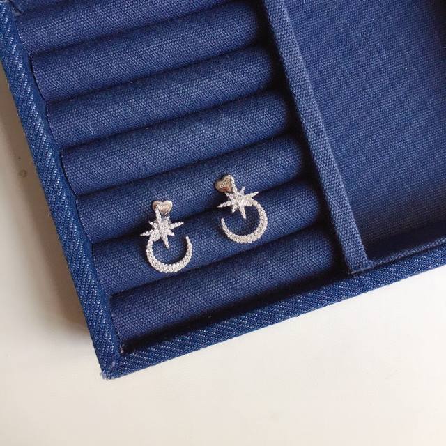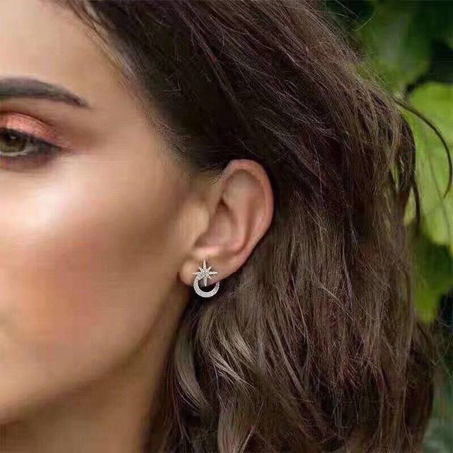 Batch A, New Star and Moon Earrings, 925 Sterling Silver with Thick Gold Plating, Department Store Version.