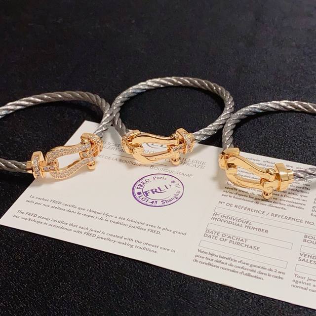 New product release! High-quality, soft silver cord bracelets in champagne gold, featuring Fred Ferdinand full, half, or no diamonds, with horseshoe clasps for unisex styles! Fashionable and sophisticated, this Force series bracelet is a high-end custom bracelet featuring a micro-plated 18K gold horseshoe clasp! Extremely versatile, a must-have for influencers and fashionistas. Available in rose gold, yellow gold, or silver. Available for couples in two sizes: 17 and 19cm.