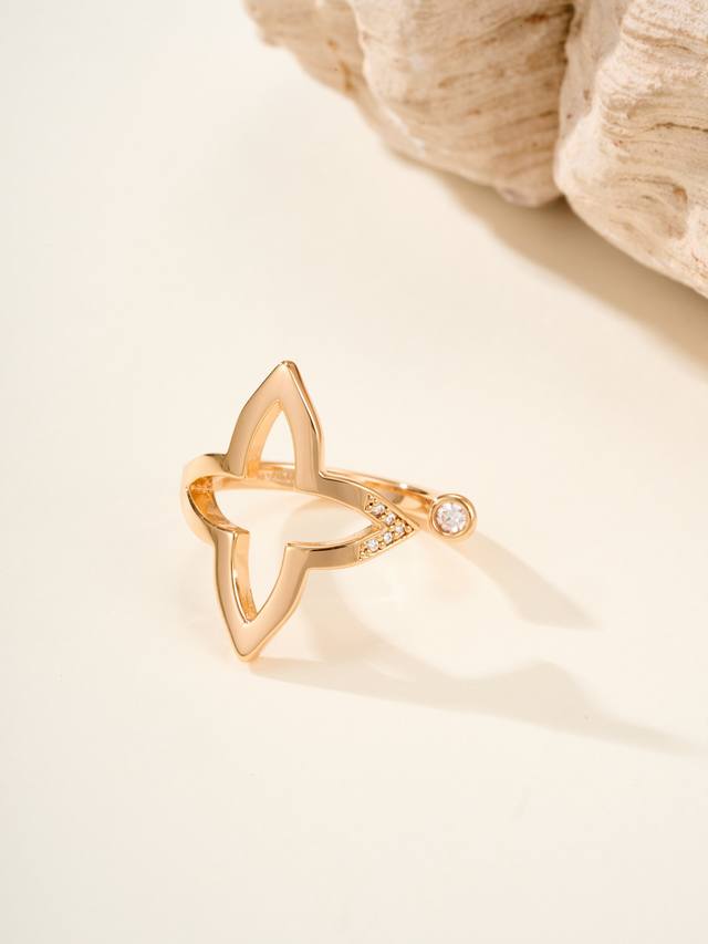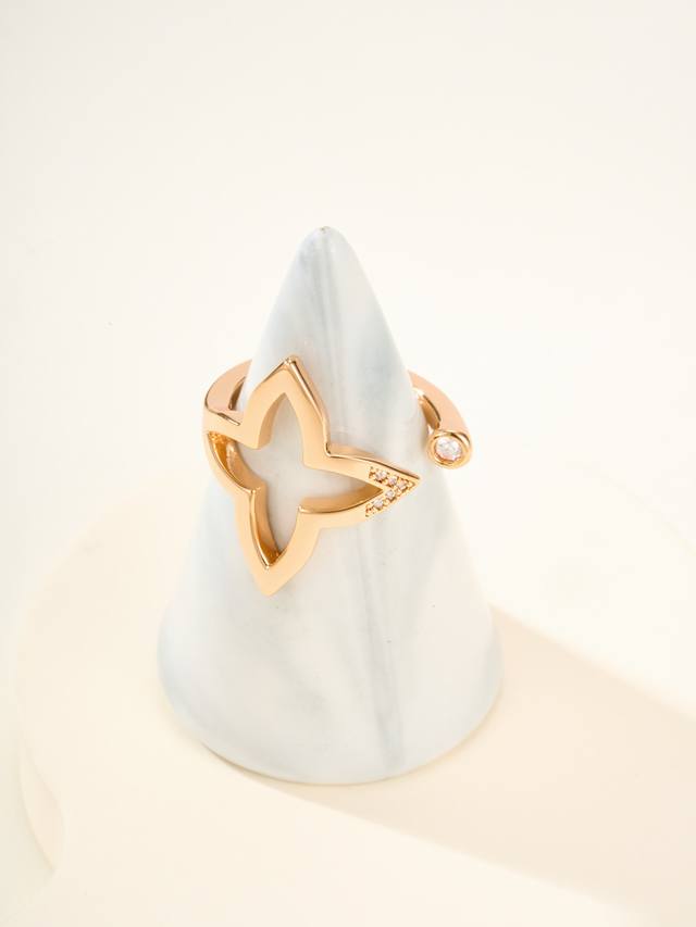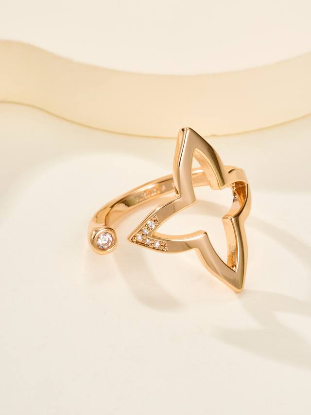 Blossom series new ring, size 678, with an adjustable opening, still features the brand's iconic Monogram four-pointed star design. The most distinctive feature of this new piece is its openwork geometric shape paired with a clever diamond setting, creating a captivating, sparkling starlight effect.