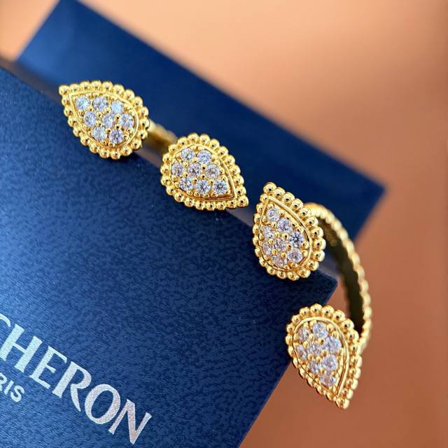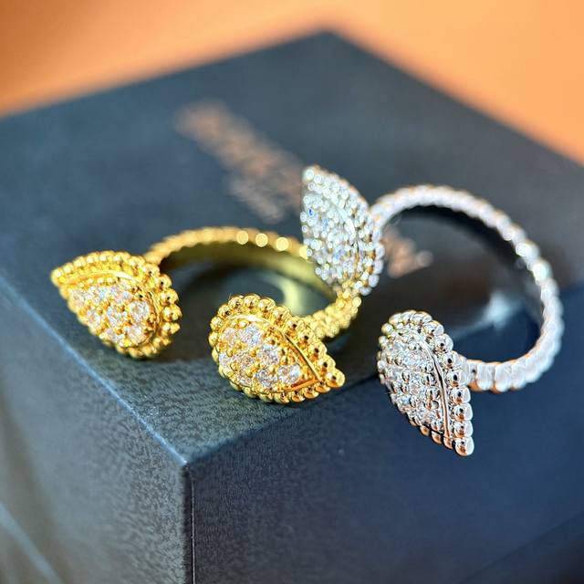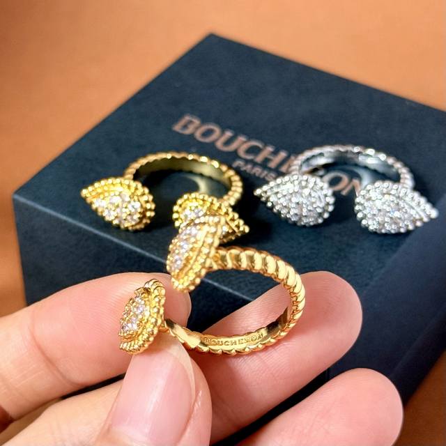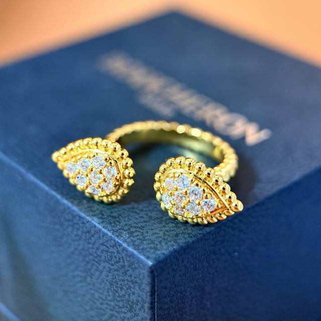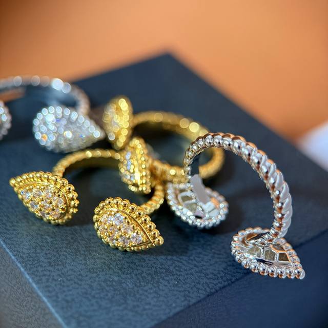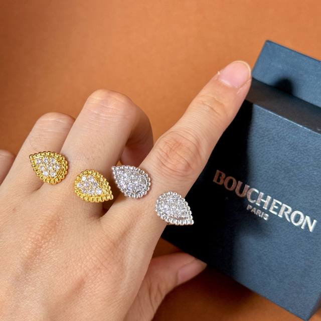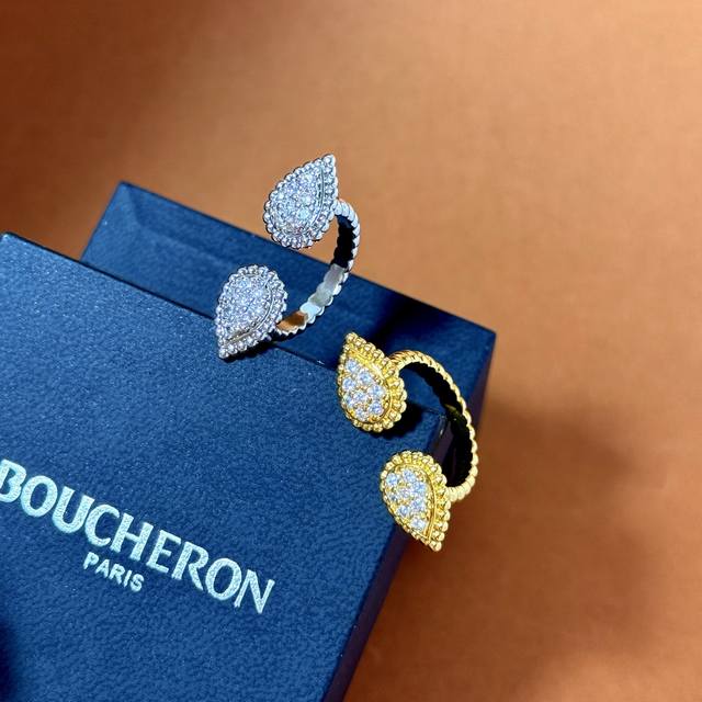 Boucheron European and American fashion metal texture full diamond double teardrop open ring brass material electroplated with 18K gold 2 colors: yellow gold and white gold one size 7 can be fine-tuned