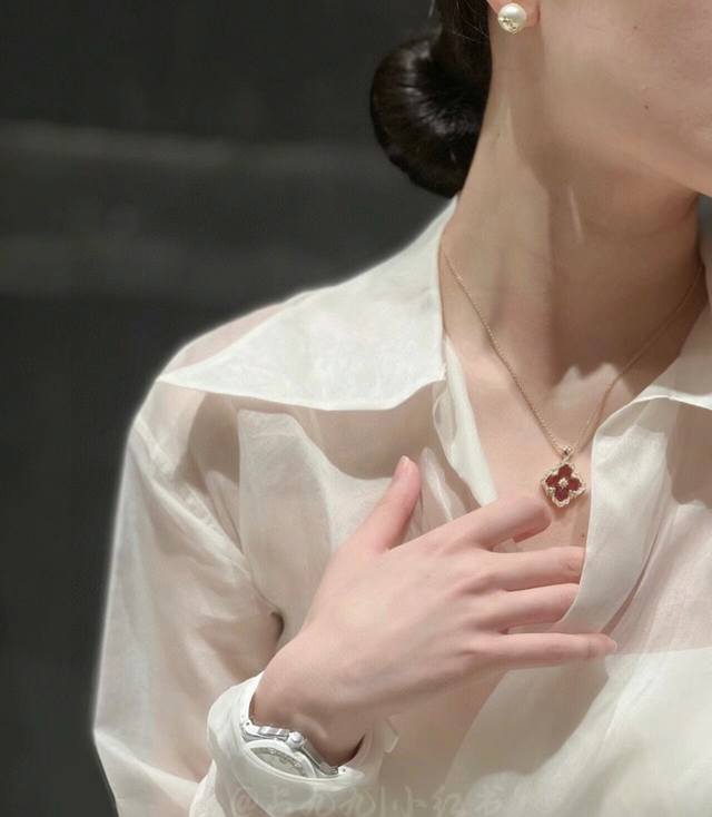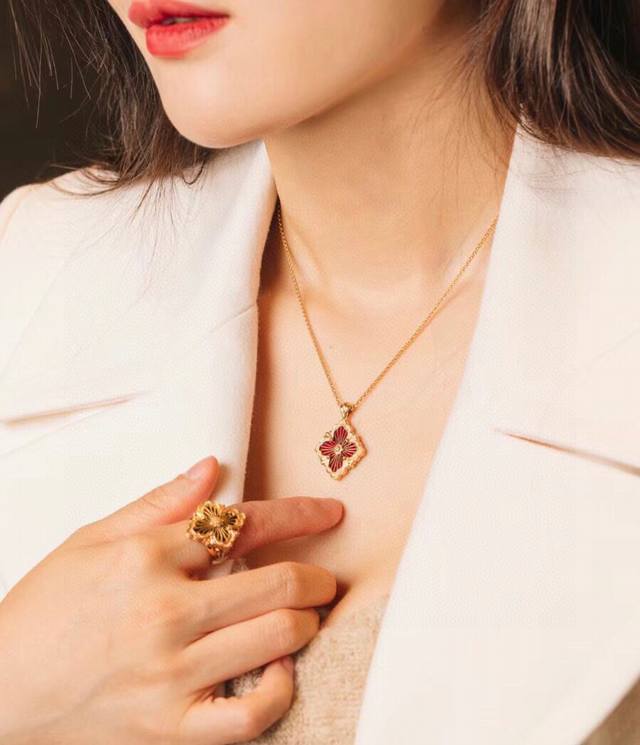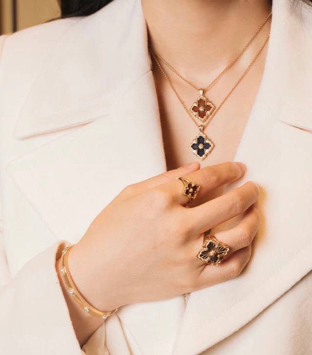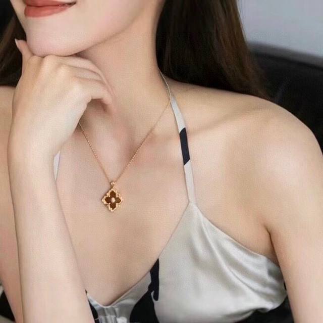 Buccellati, an Italian high-end jewelry brand, offers a retro palace-style necklace with brushed diamonds, a four-leaf clover, shell, agate, and chalcedony. This double-sided necklace is made of V-gold and features 18K thick gold plating. It features an original tail chain and buckle. High-quality Buccellati necklace with a four-leaf clover necklace.