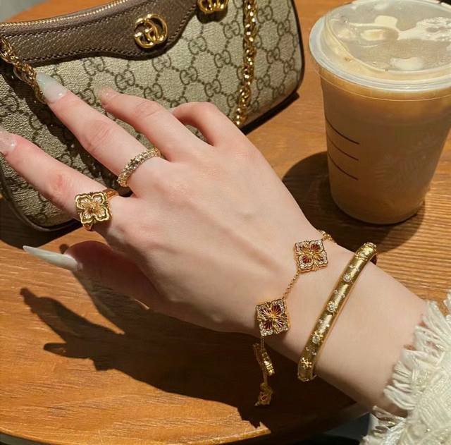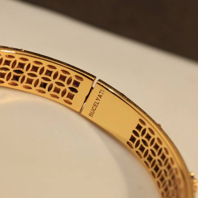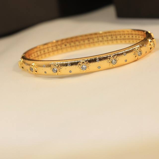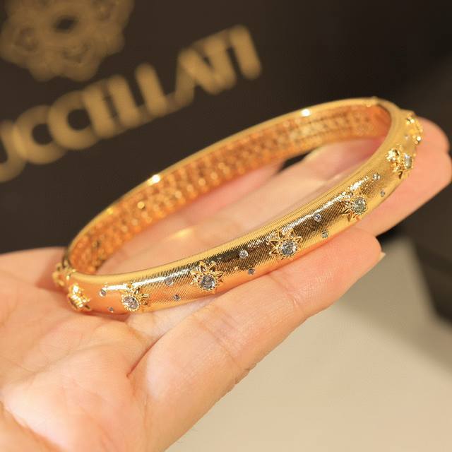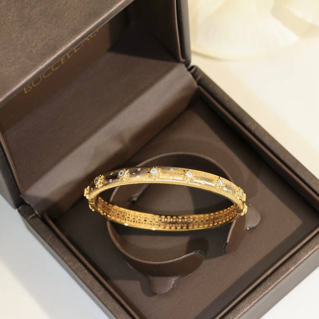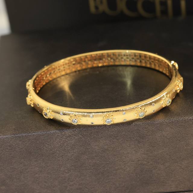 Buccellati, Italian high-end jewelry brand, vintage court style diamond-studded brushed bracelet, made of 18K thick gold plated, high-quality Buccellati bracelet.